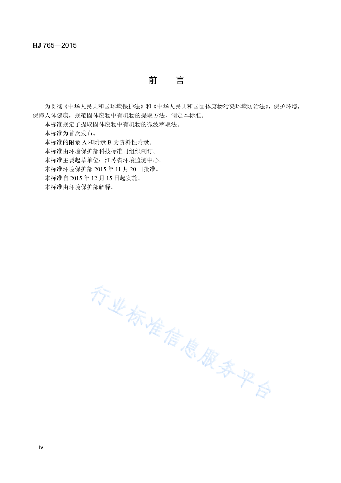 HJ 765-2015 固体废物 有机物的提取 微波萃取法