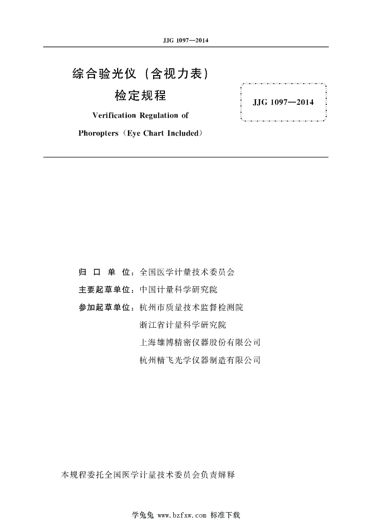 中国计量科学研究院、杭州市质量技术监督检测院、浙江省计量科学研究院、上海雄博精密仪器股份有限公司、杭州精飞光学仪器制造有限公司