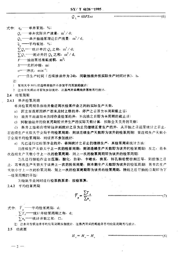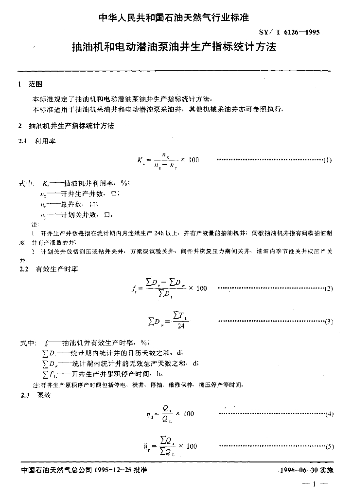 SY/T 6126-1995 抽油机和电动潜油泵油井生产指标统计方法
