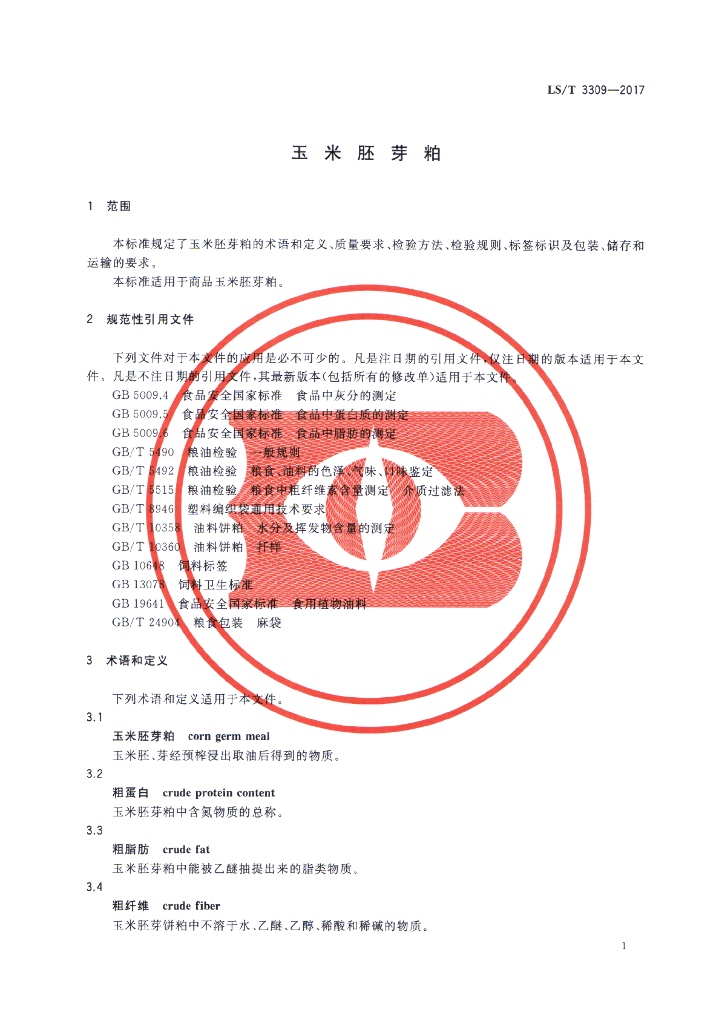 LS/T 3309-2017 玉米胚芽粕