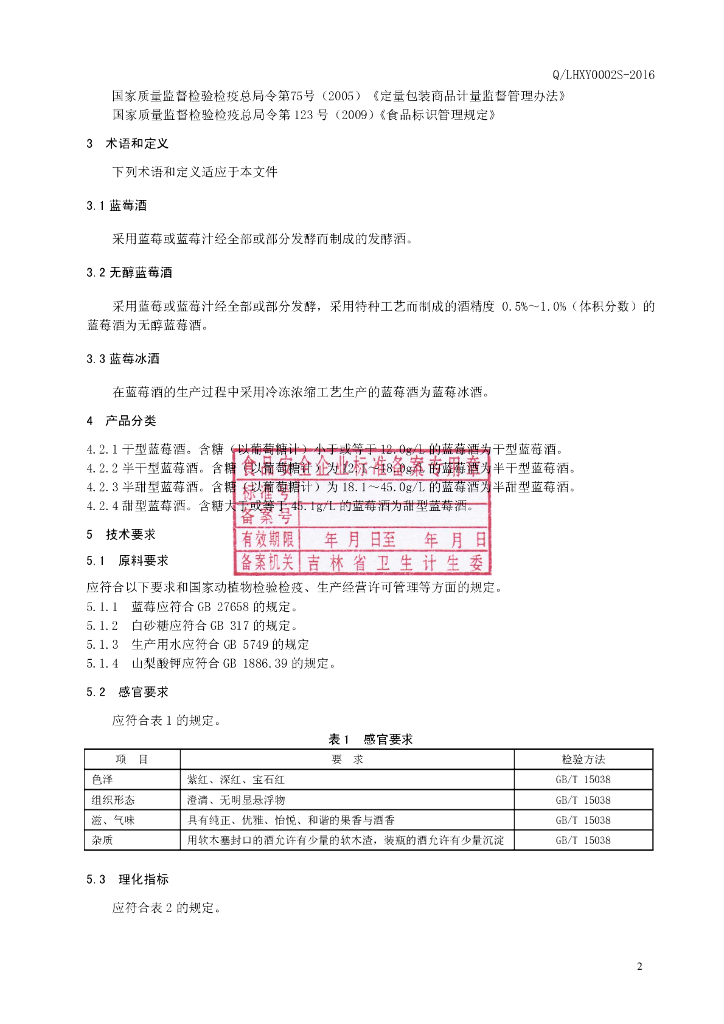 Q/LHXY 0002S-2016 吉林省林海雪原酿酒有限责任公司 蓝莓酒