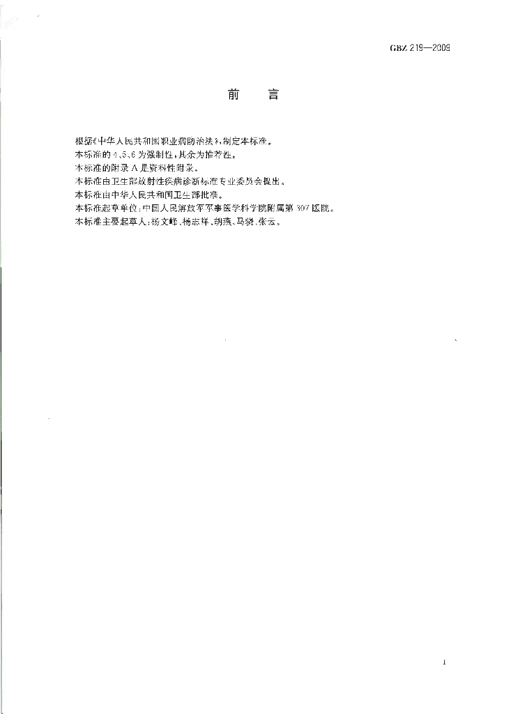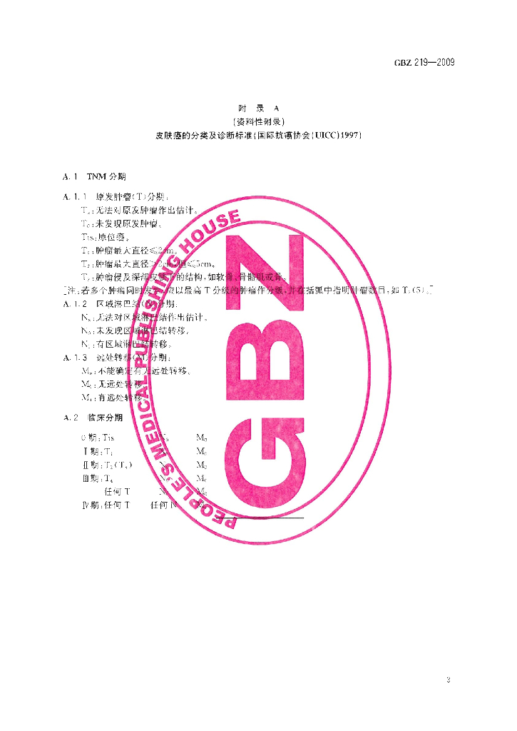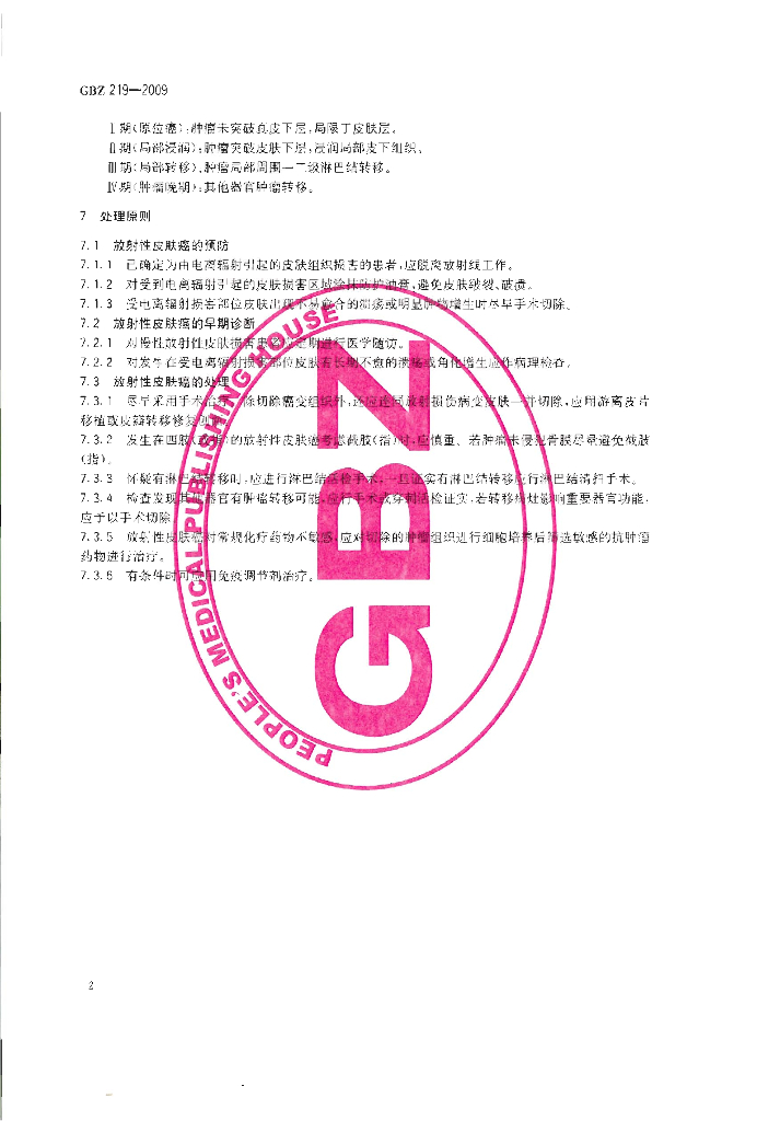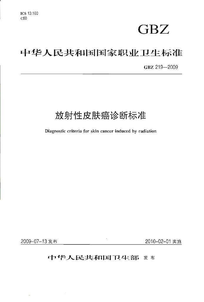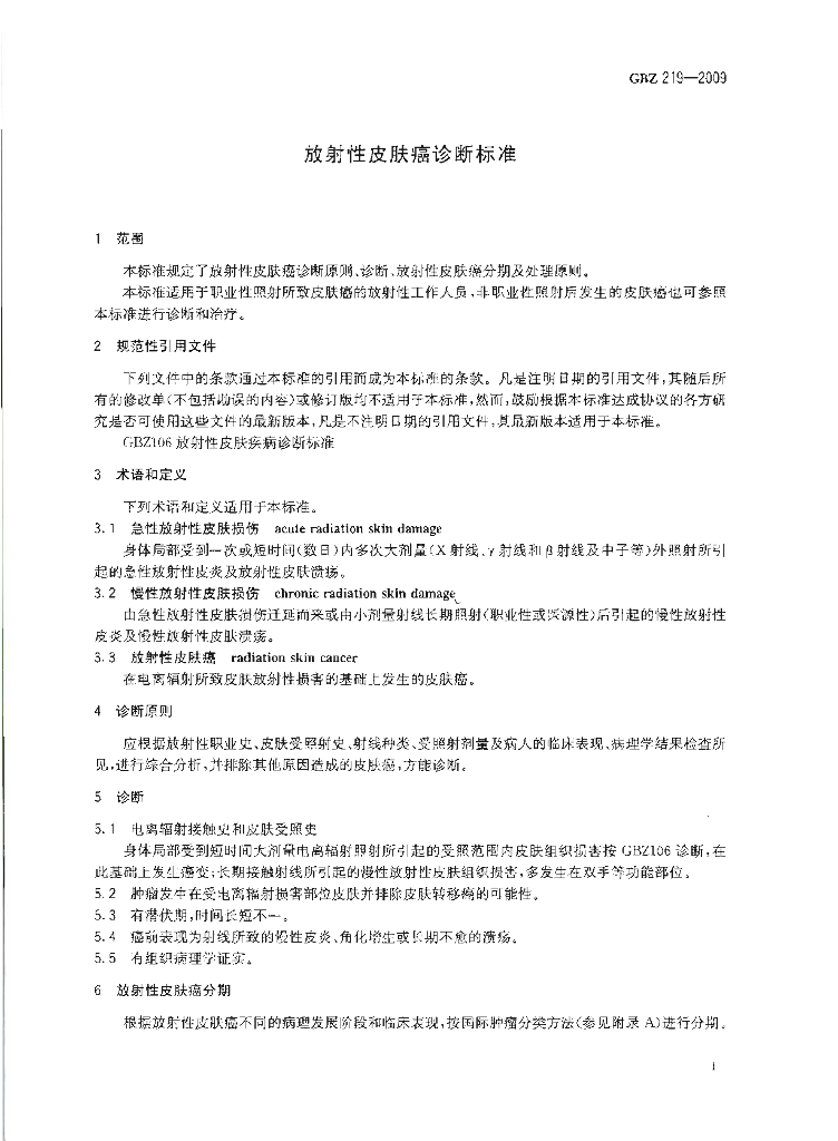 GBZ 219-2009 放射性皮肤癌诊断标准