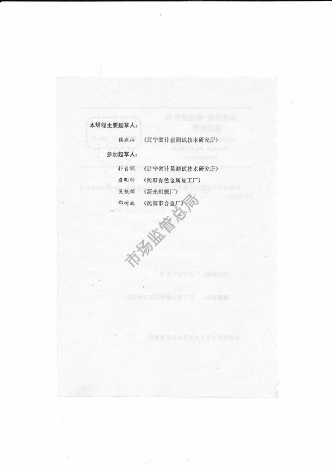 侯永山(辽宁省计量测试技术研究所)、朴台顺(辽宁省计量测试技术研究所)、盛明科(沈阳有色金属加工厂)、吴铁顺(新光机械厂)、邵树成(沈阳市合金厂)