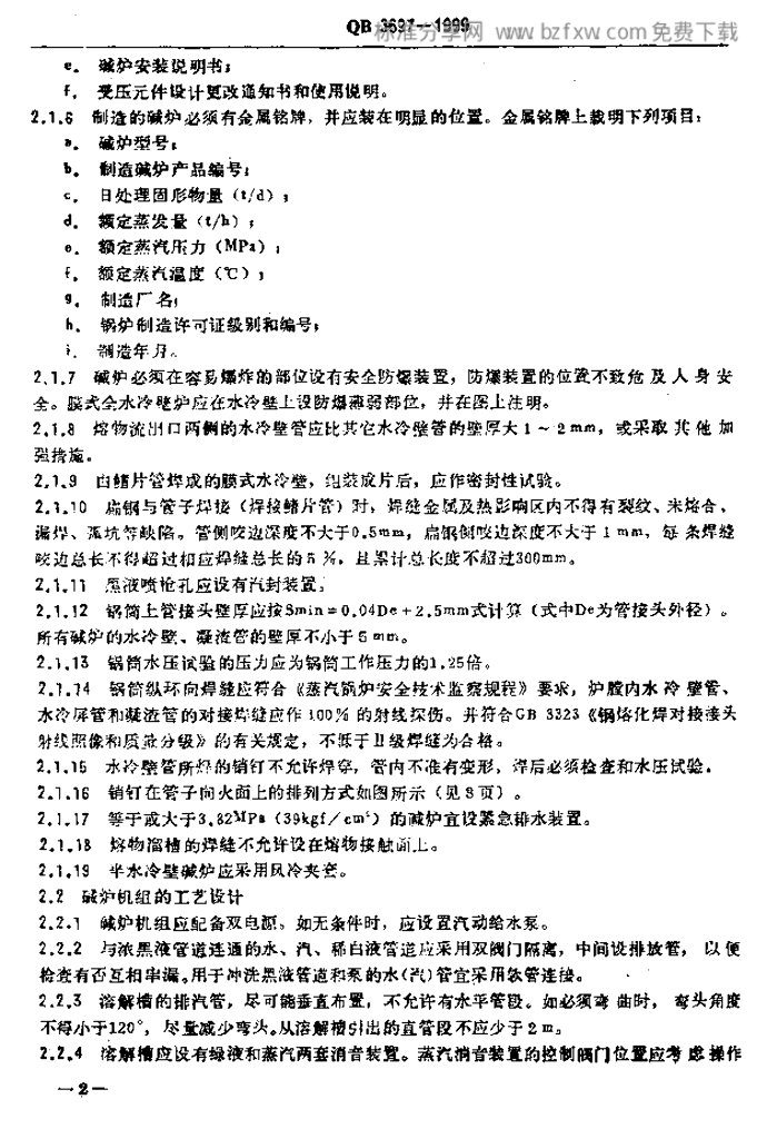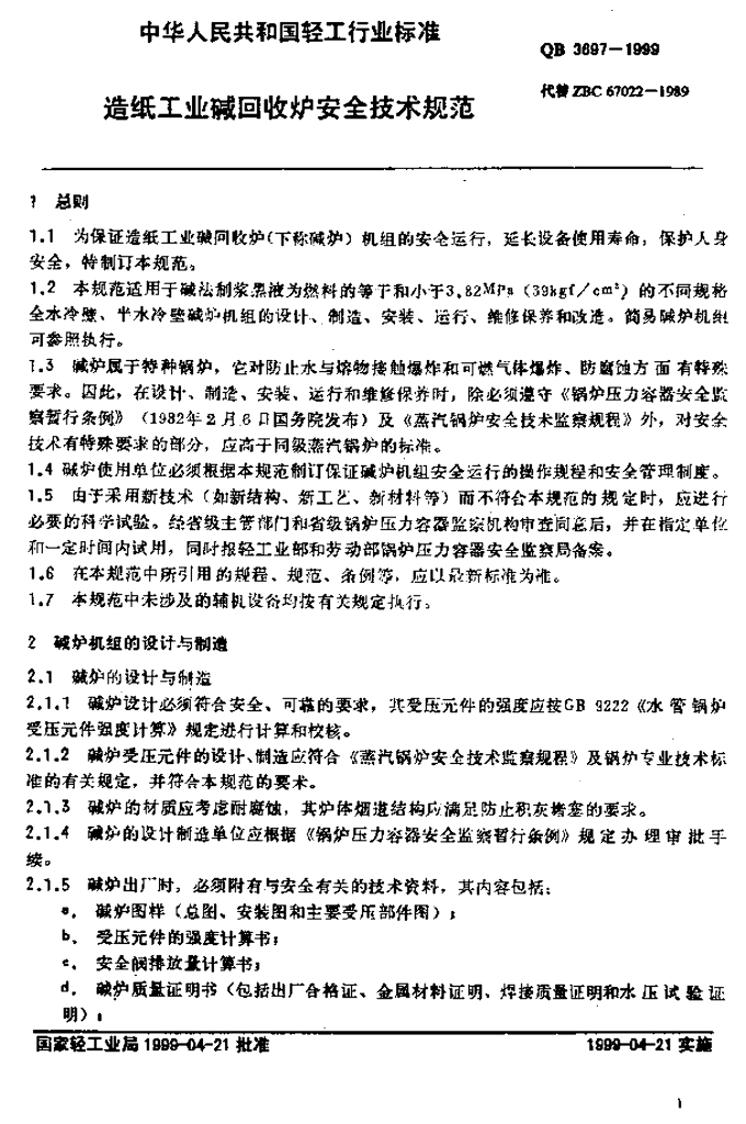 QB 3697-1999 造纸工业碱回收炉安全技术规范