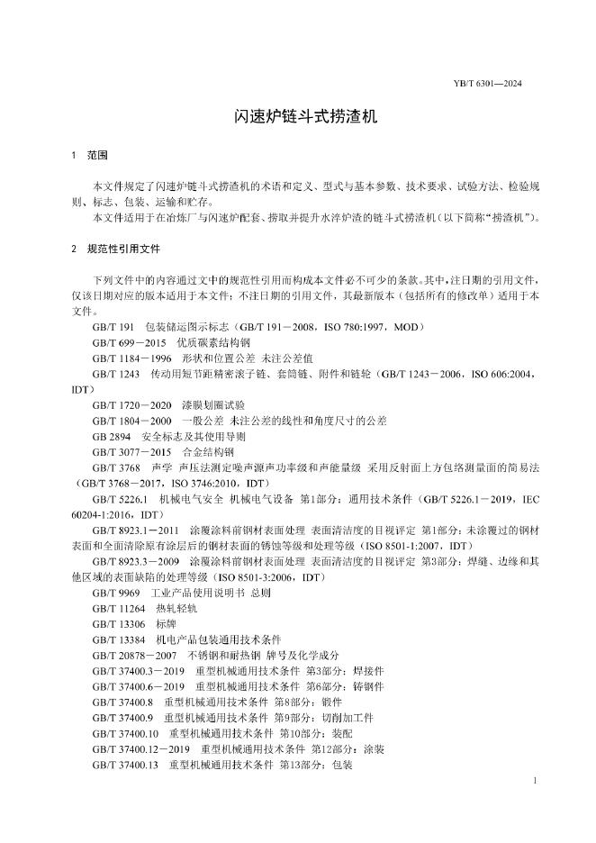 YB/T 6301-2024 闪速炉链斗式捞渣机