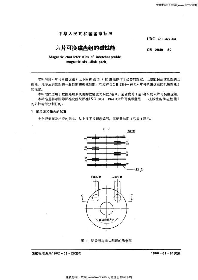 GB/T 2949-1982 六片可换磁盘组的磁性能