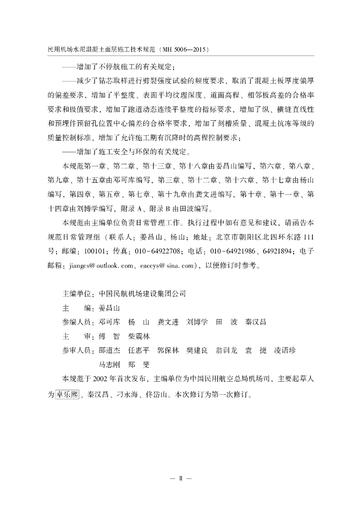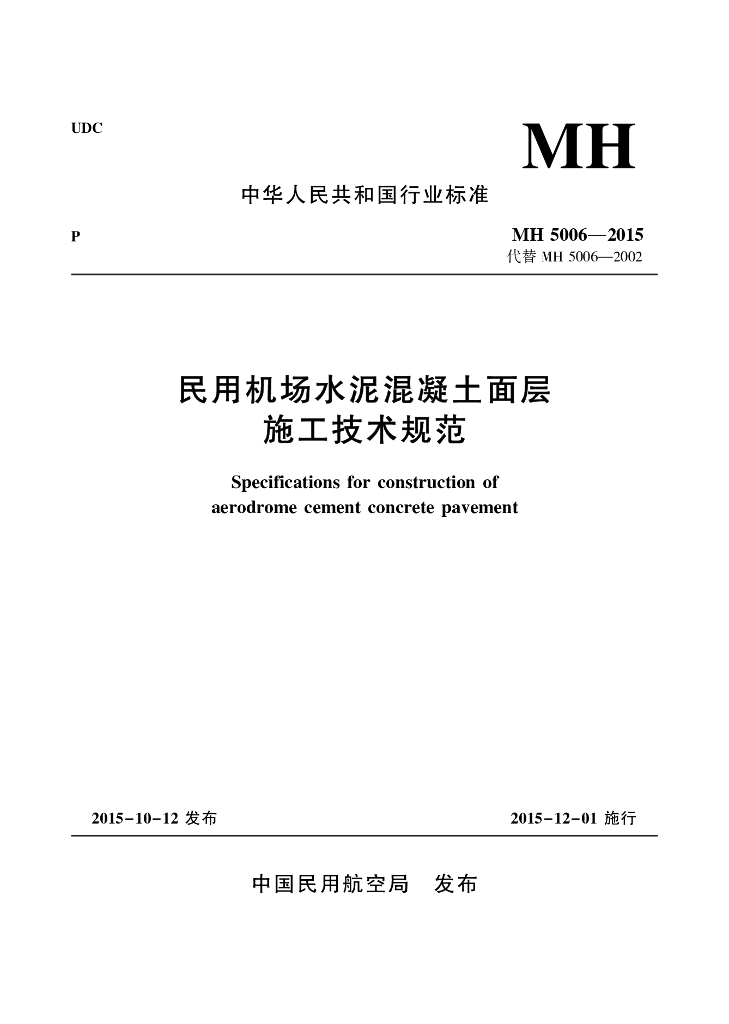 MH 5006-2015 民用机场水泥混凝土面层施工技术规范