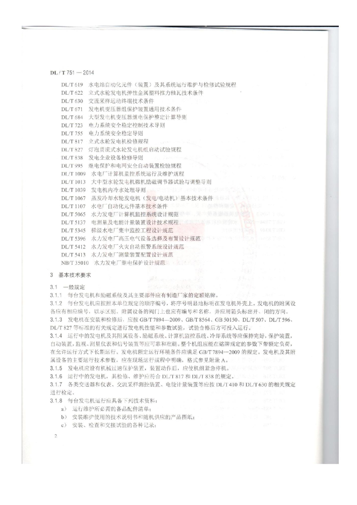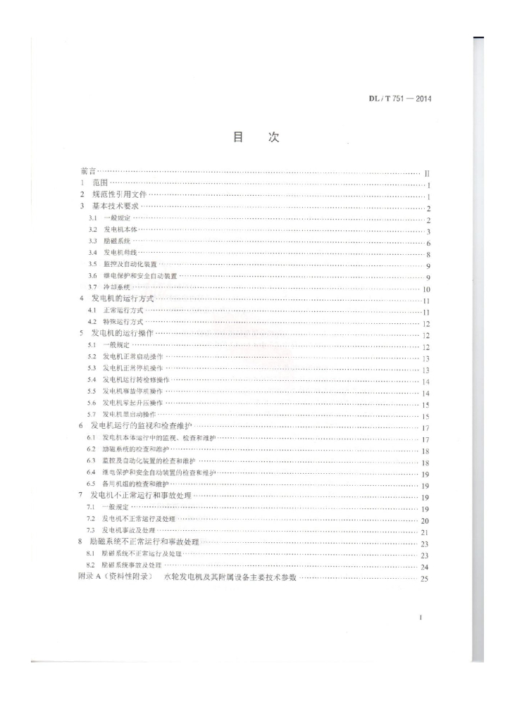 DL/T 751-2014 水轮发电机运行规程