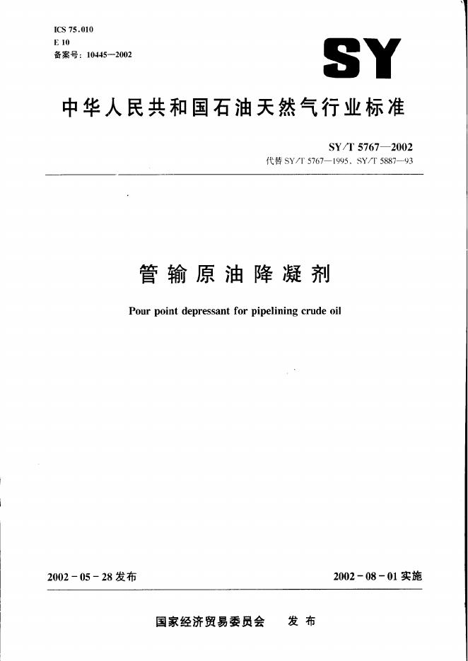 SY/T 5887-1993 原油降凝剂效果评定方法