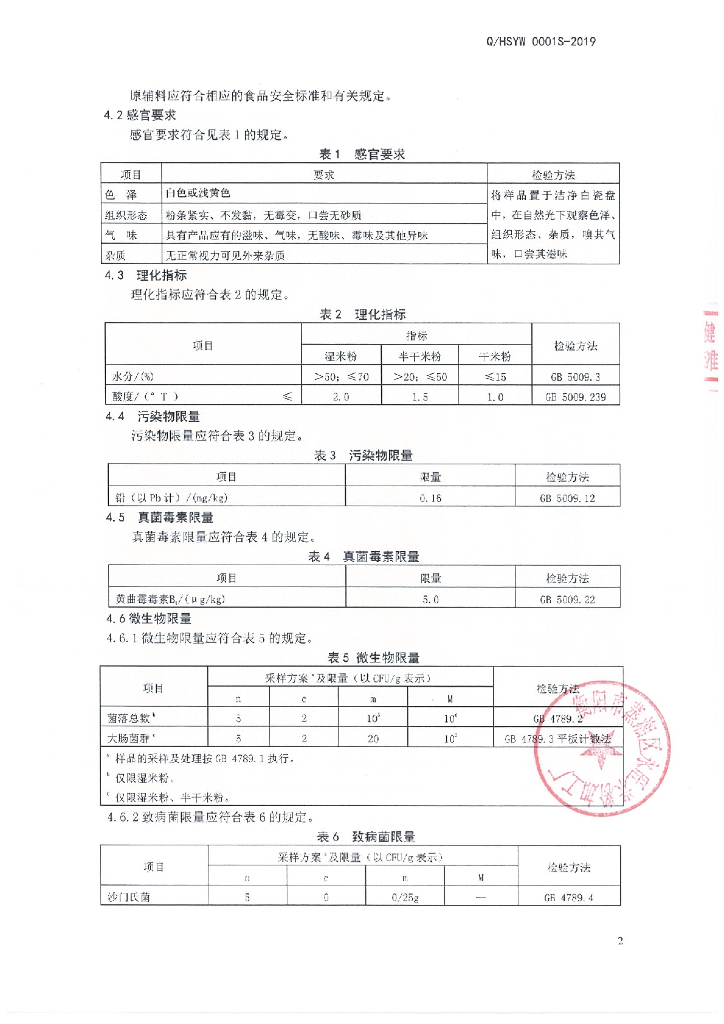 Q/HSYW 0001S-2019 米粉