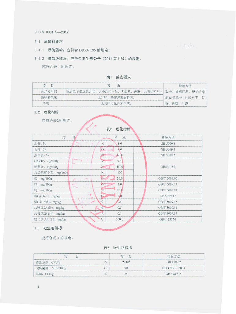 Q/LCS 0001S-2012 螺旋藻片