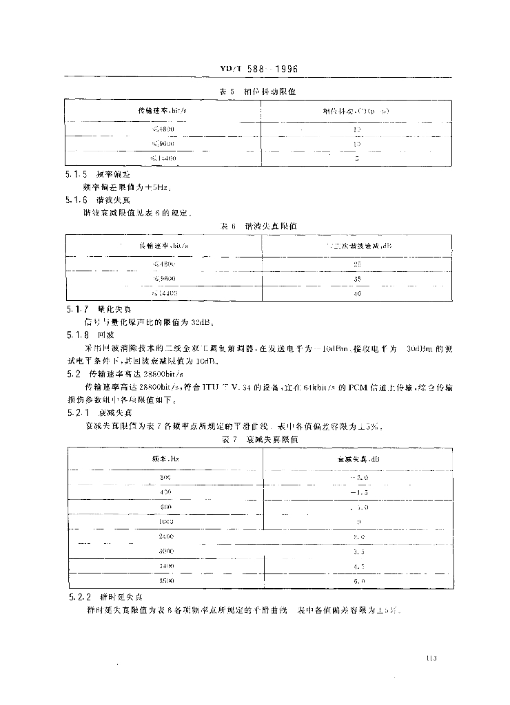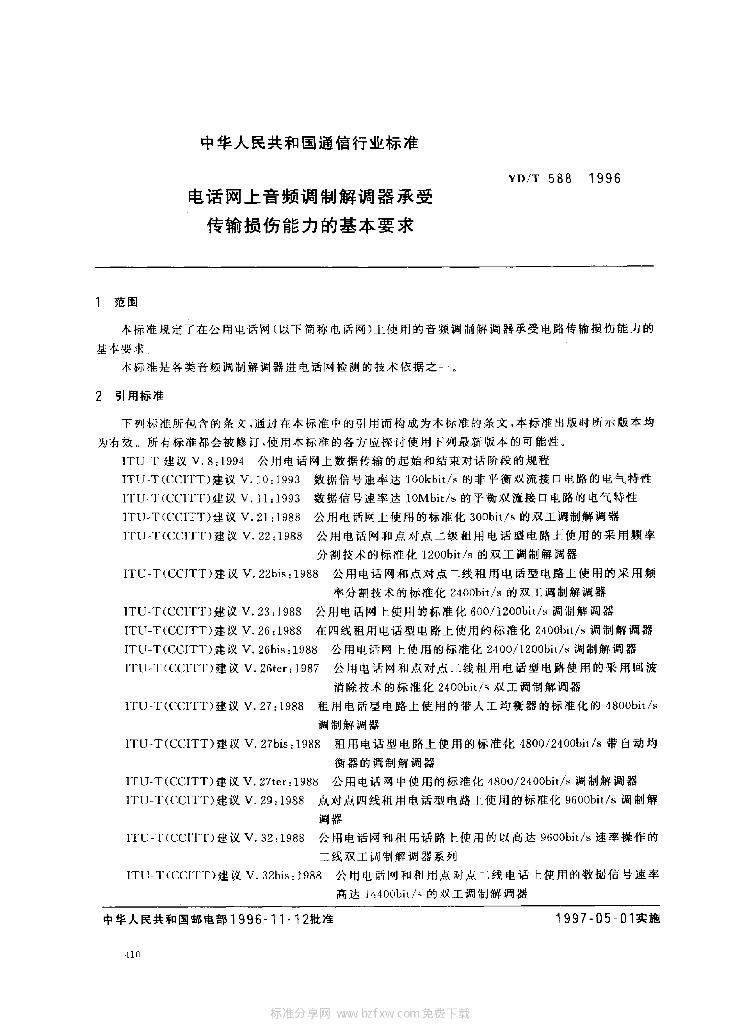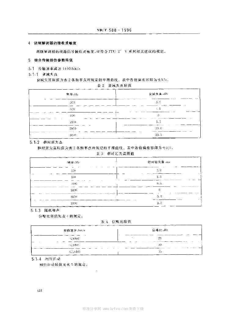 YD/T 588-1996 电话网上音频调制解调器承受传输损伤能力的基本要求