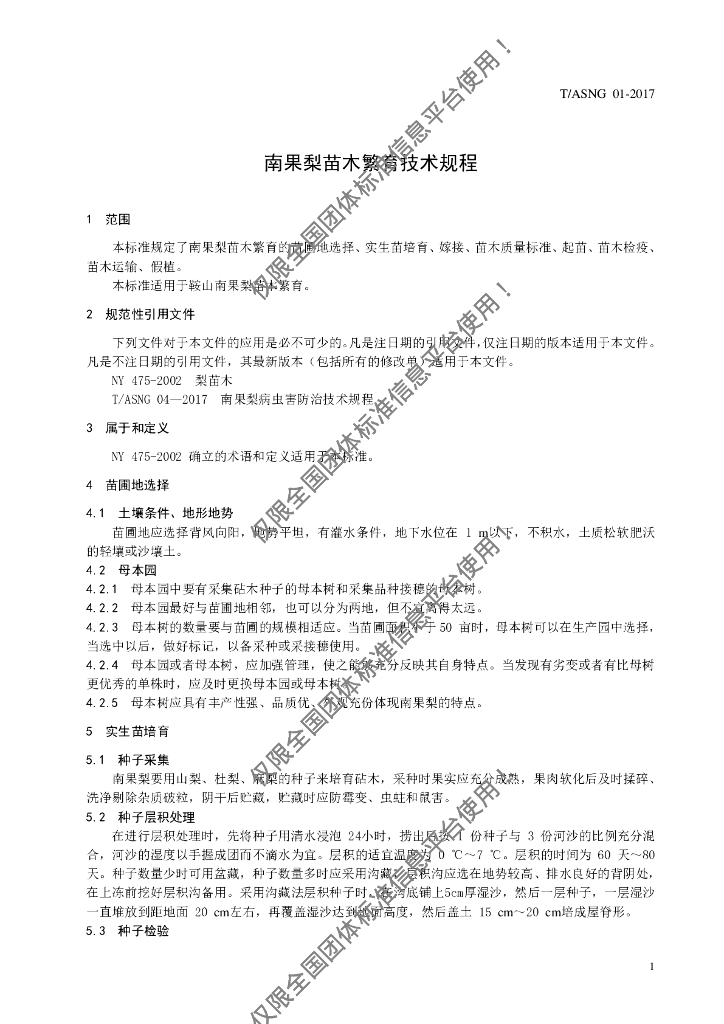 T/ASNG 02-2017 南果梨建园技术规程