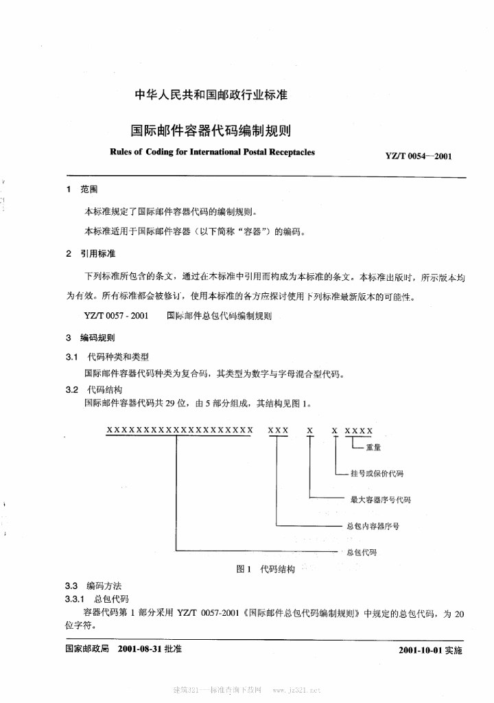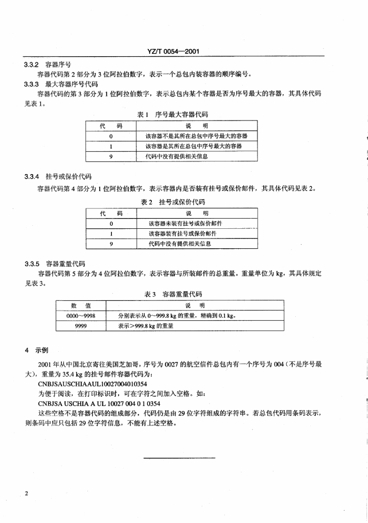 YZ/T 0054-2001 国际邮件容器代码编制规则