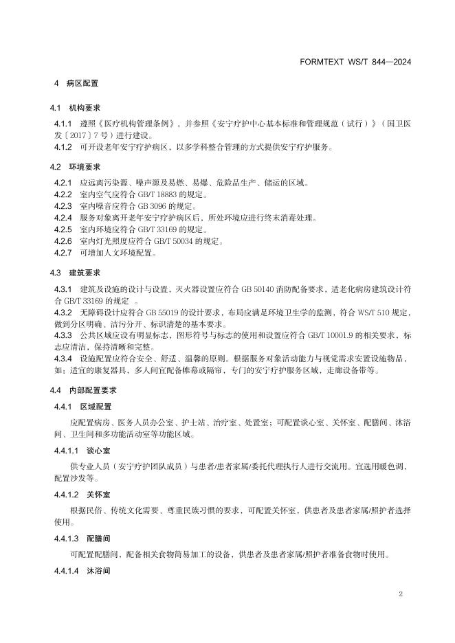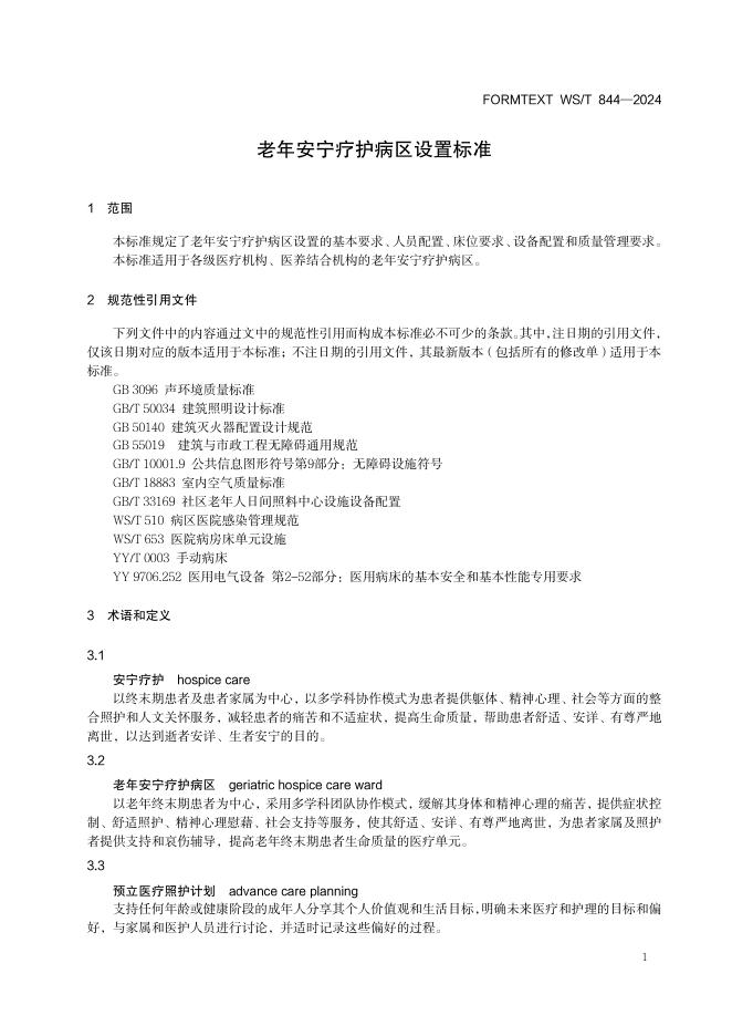 WS/T 844-2024 老年安宁疗护病区设置标准
