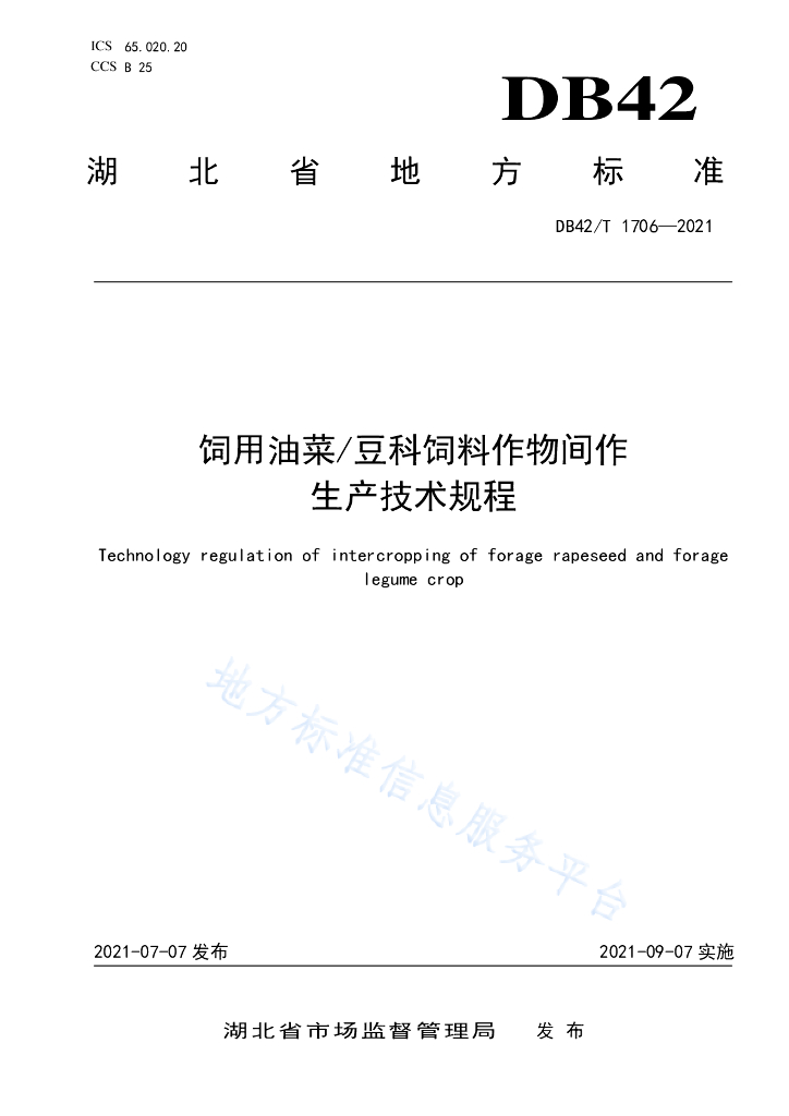 DB42/T 1706-2021 饲用油菜/豆科作物间作生产技术规程