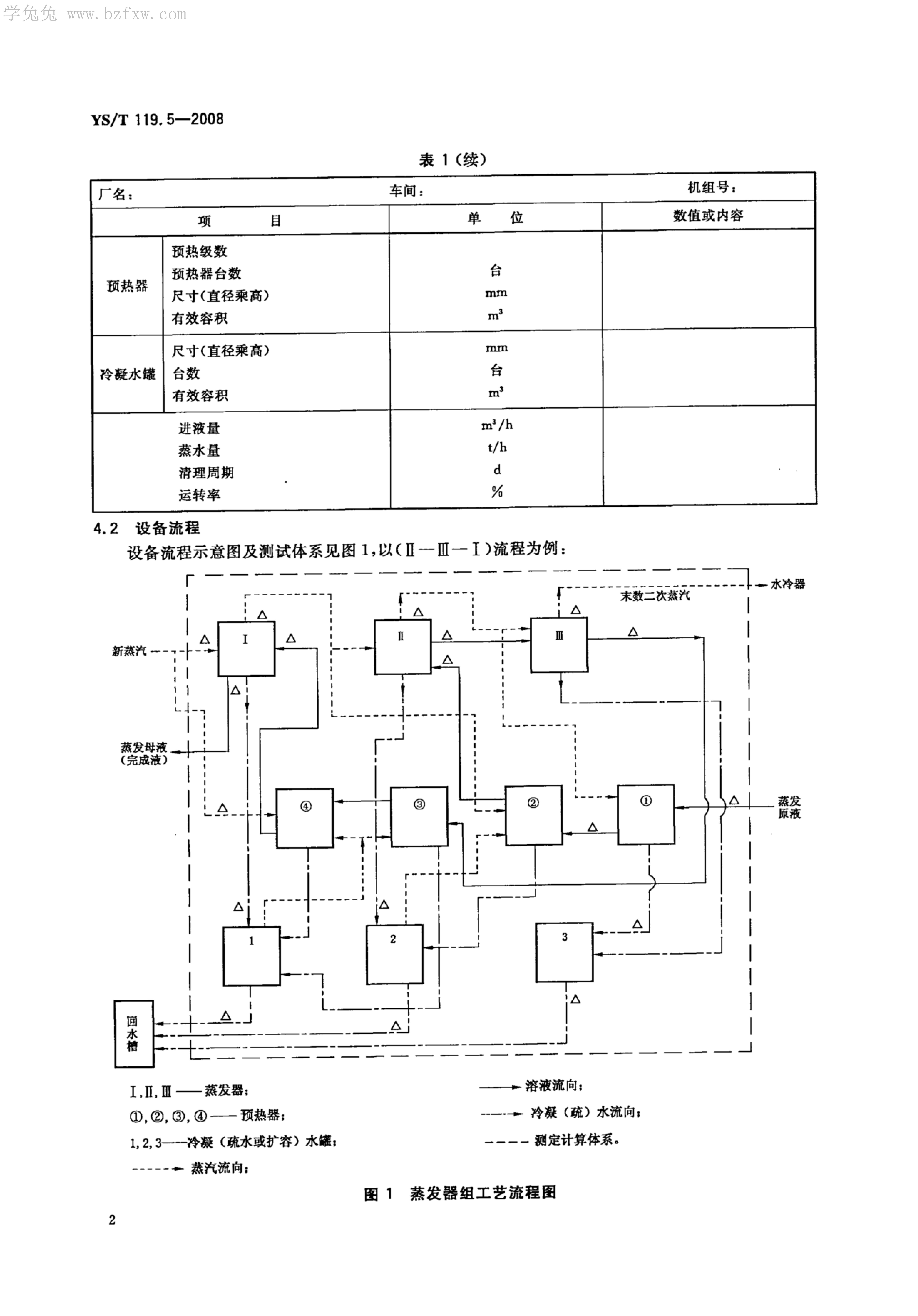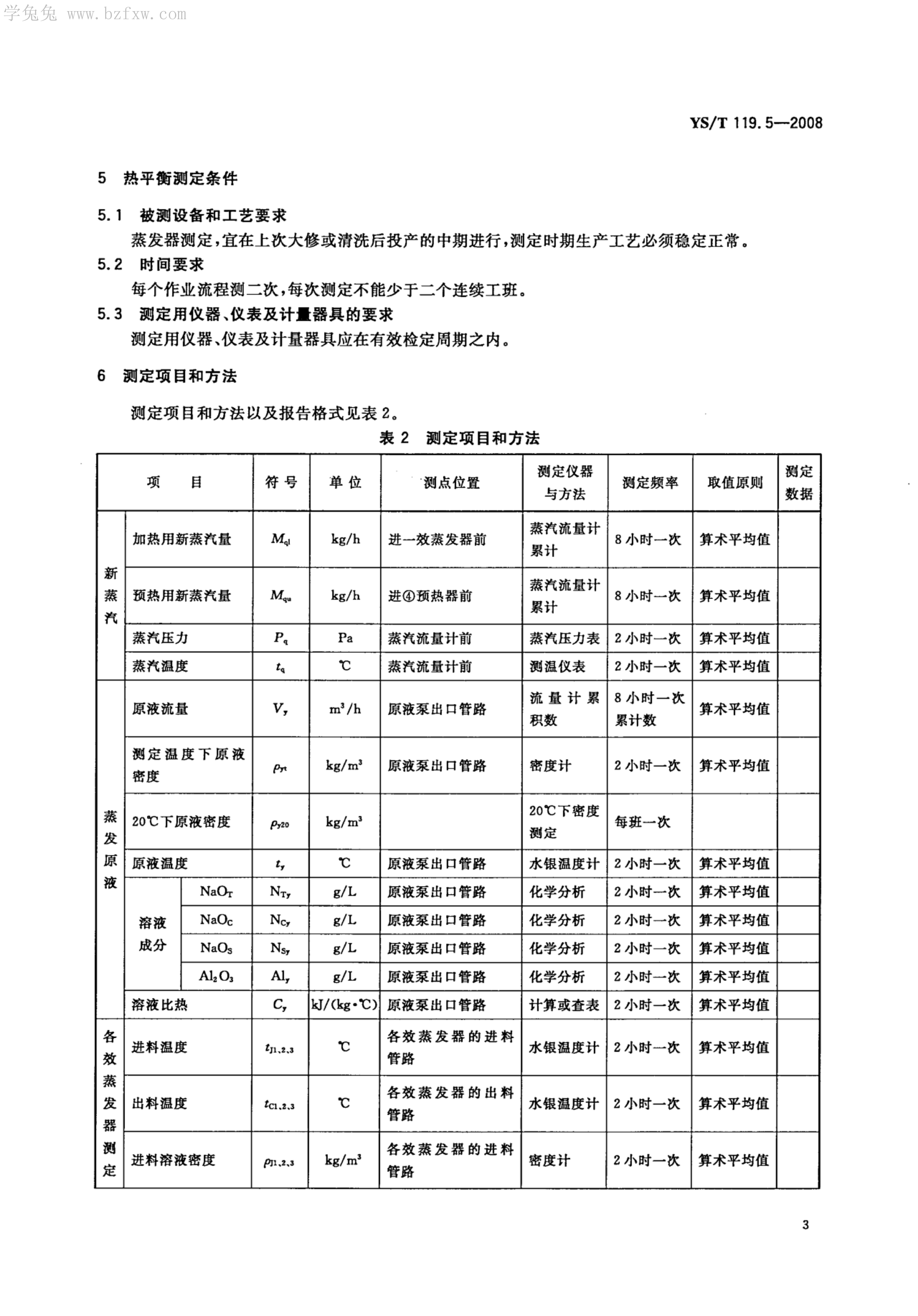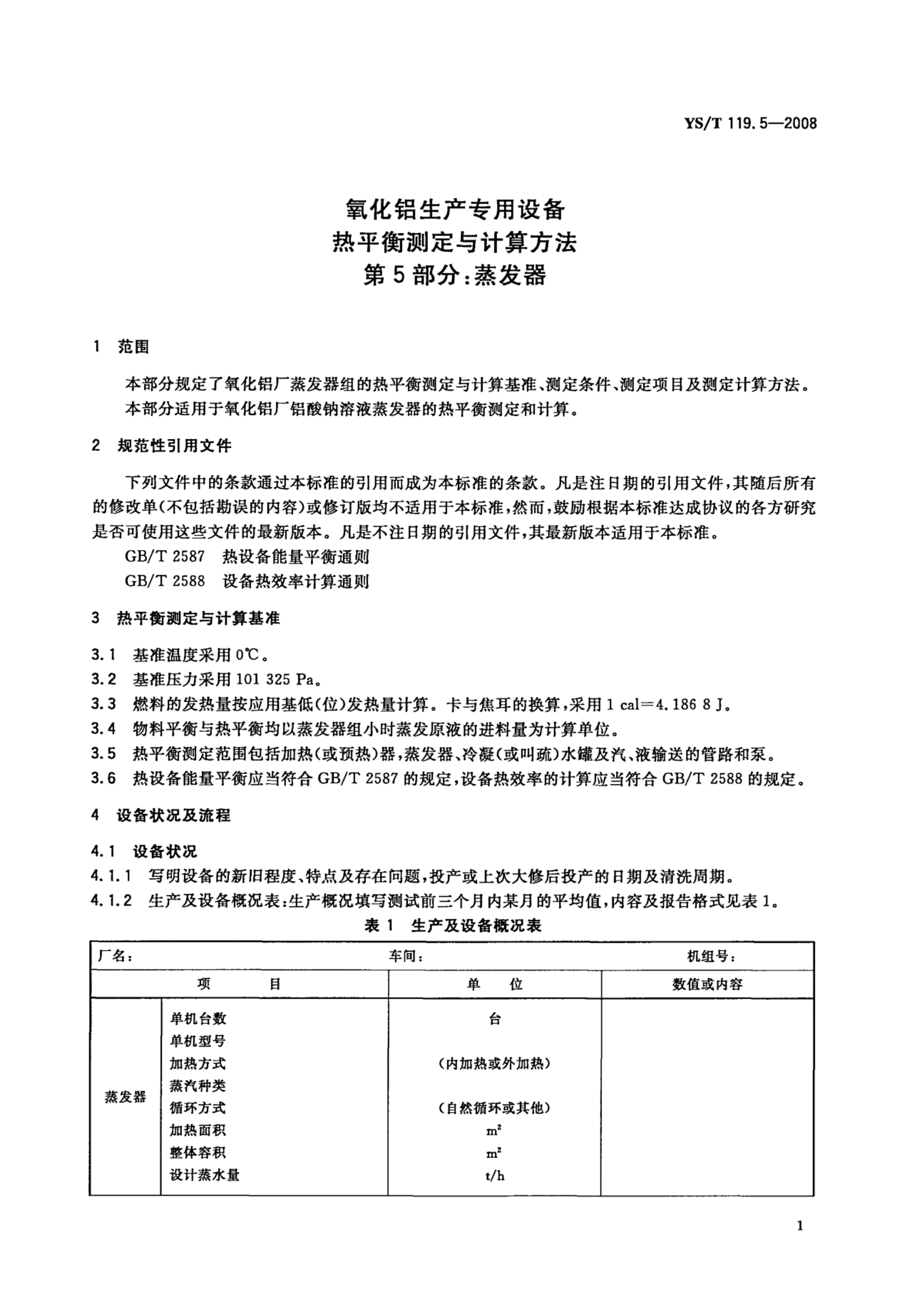 YS/T 119.5-2008 氧化铝生产专用设备热平衡测定与计算方法 第5部分:蒸发器