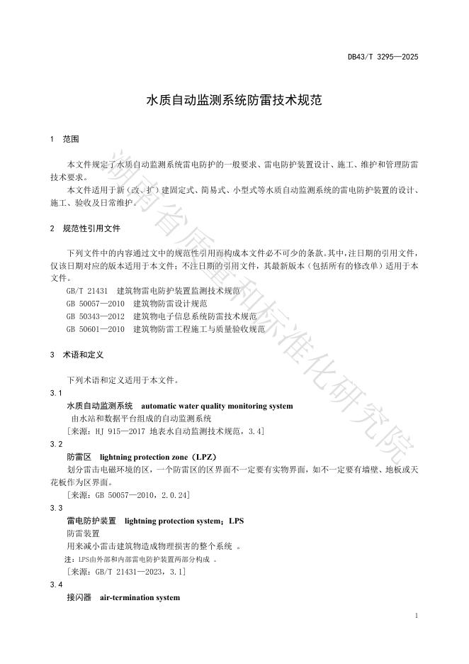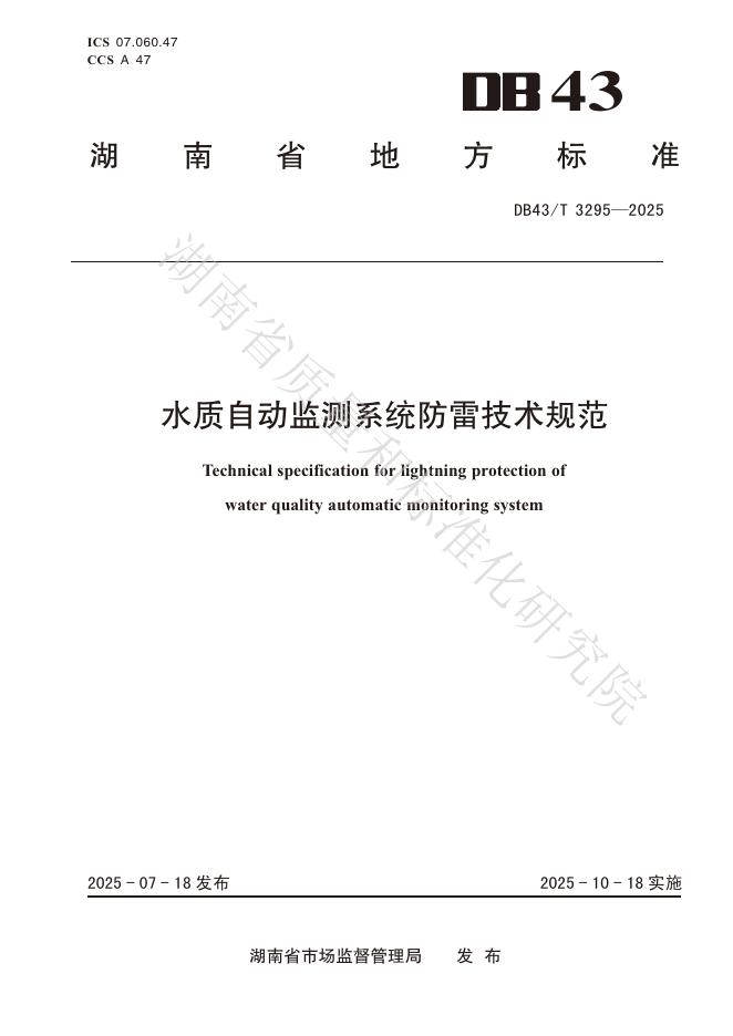 DB43/T 3295-2025 水质自动监测系统防雷技术规范