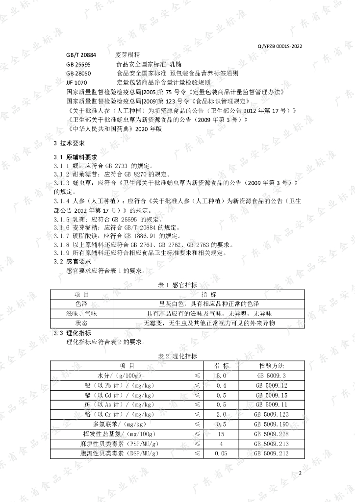 Q/YPZB 0001S-2022 参蚬片(压片糖果)