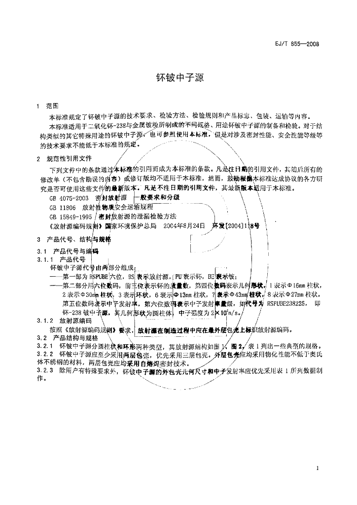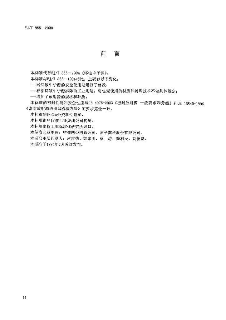 EJ/T 855-2008 钚铍中子源