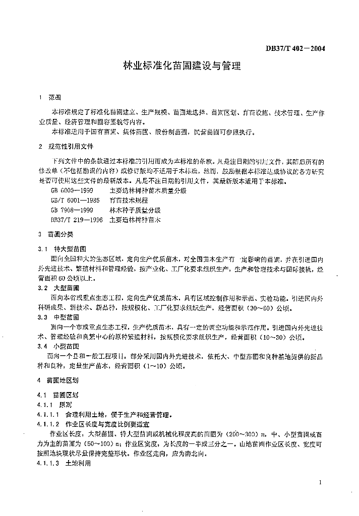 DB37/T 402-2004 林业标准化苗圃建设与管理