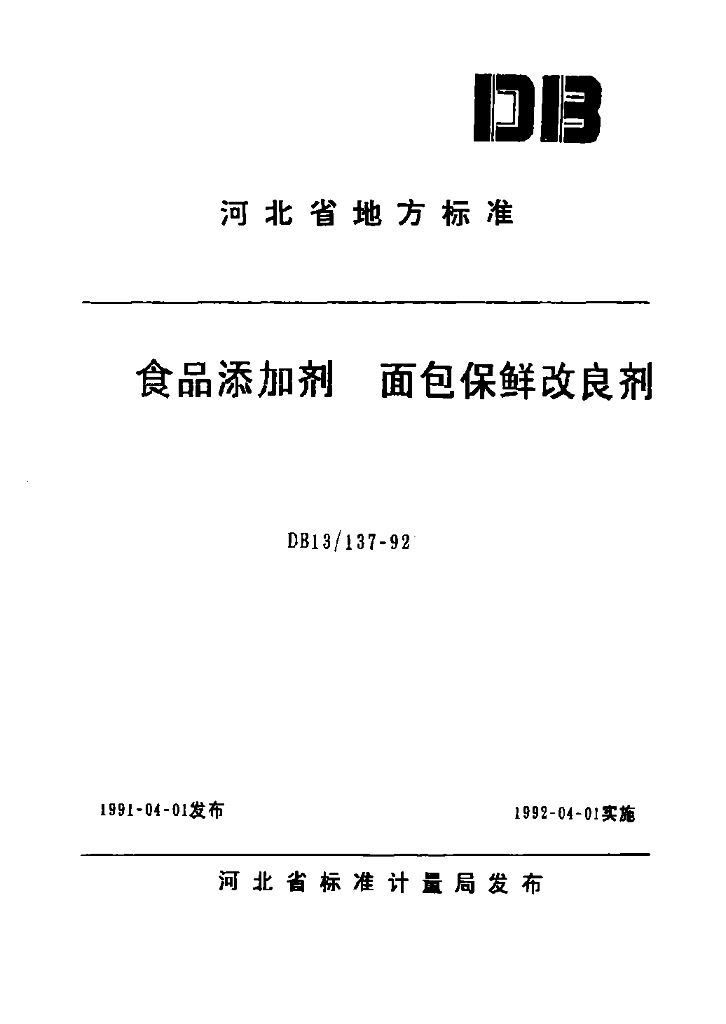 DB13/ 137-1992 食品添加剂 面包保鲜改良剂