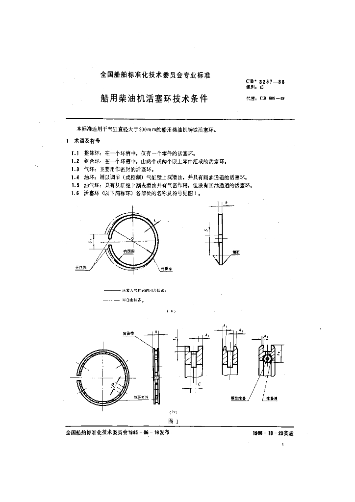CB 3257-1985 船用柴油机活塞环技术条件
