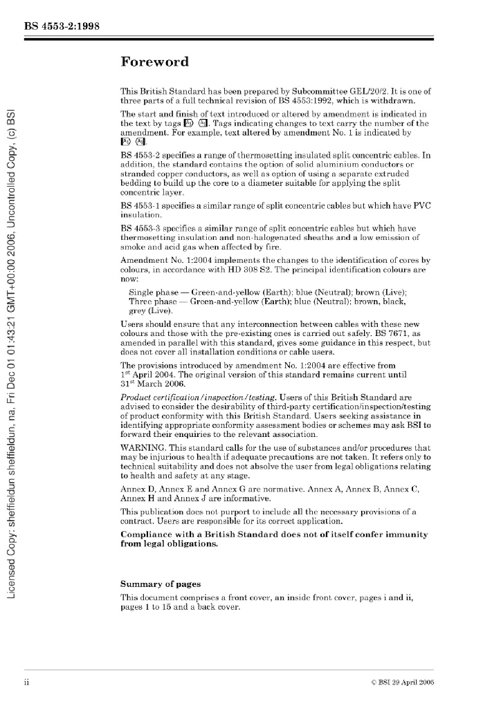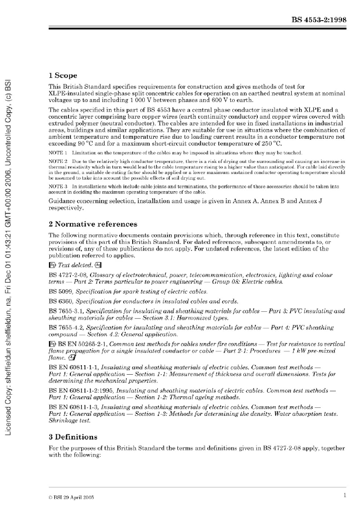 BS 4553-2:1998 600/1000V单相分芯同轴电缆规范 带热固绝缘层的电缆
