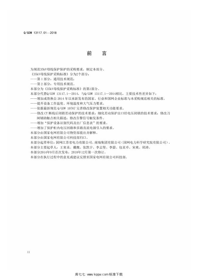 Q/GDW 13117.1-2018 35kV母线保护采购标准 第1部分:通用技术规范