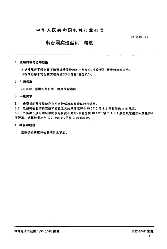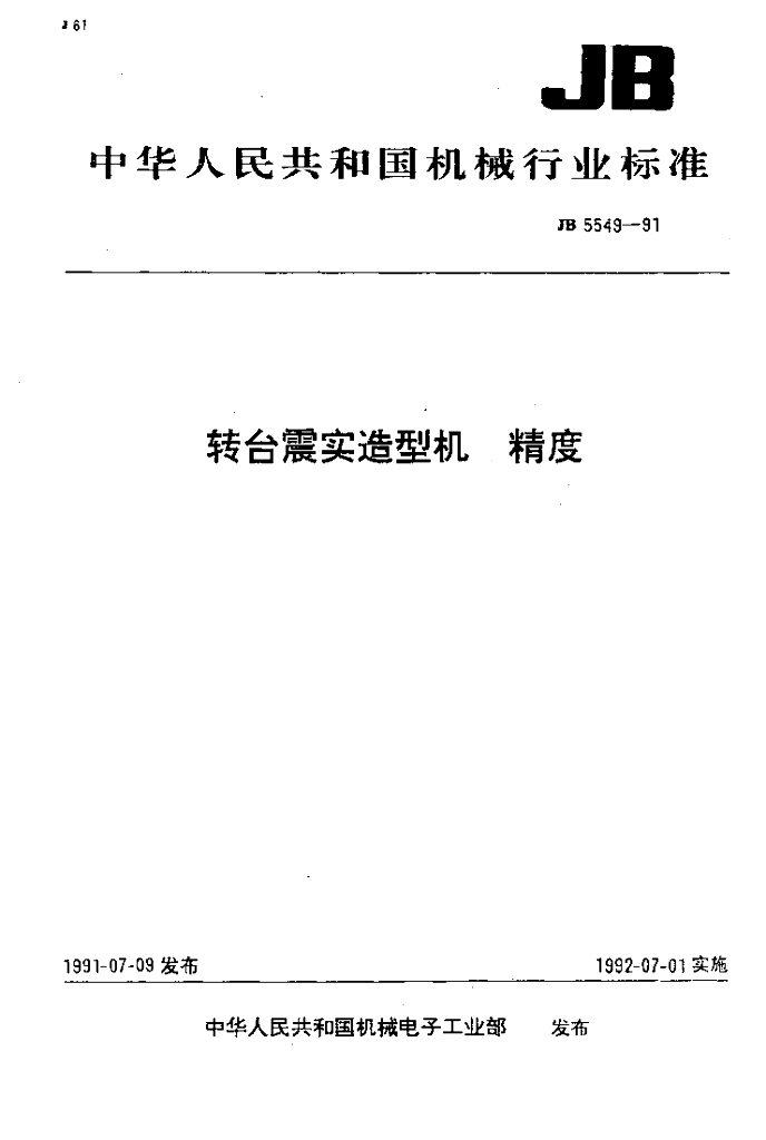 JB/T 5549-1991 转台震实造型机 精度
