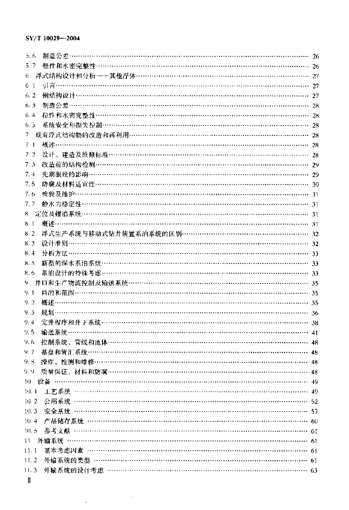 SY/T 10029-2004 浮式生产系统规划 设计与建造的推荐作法