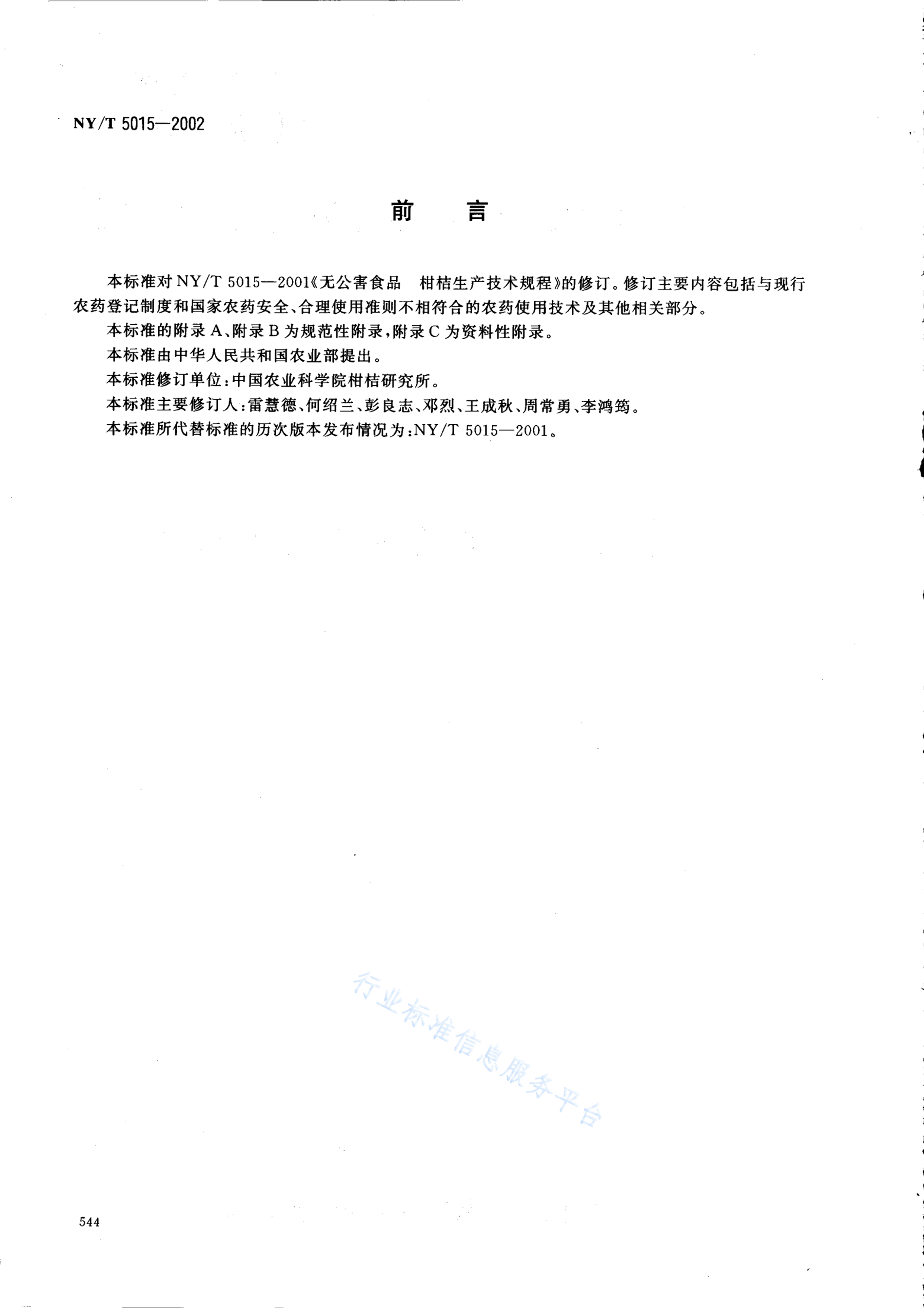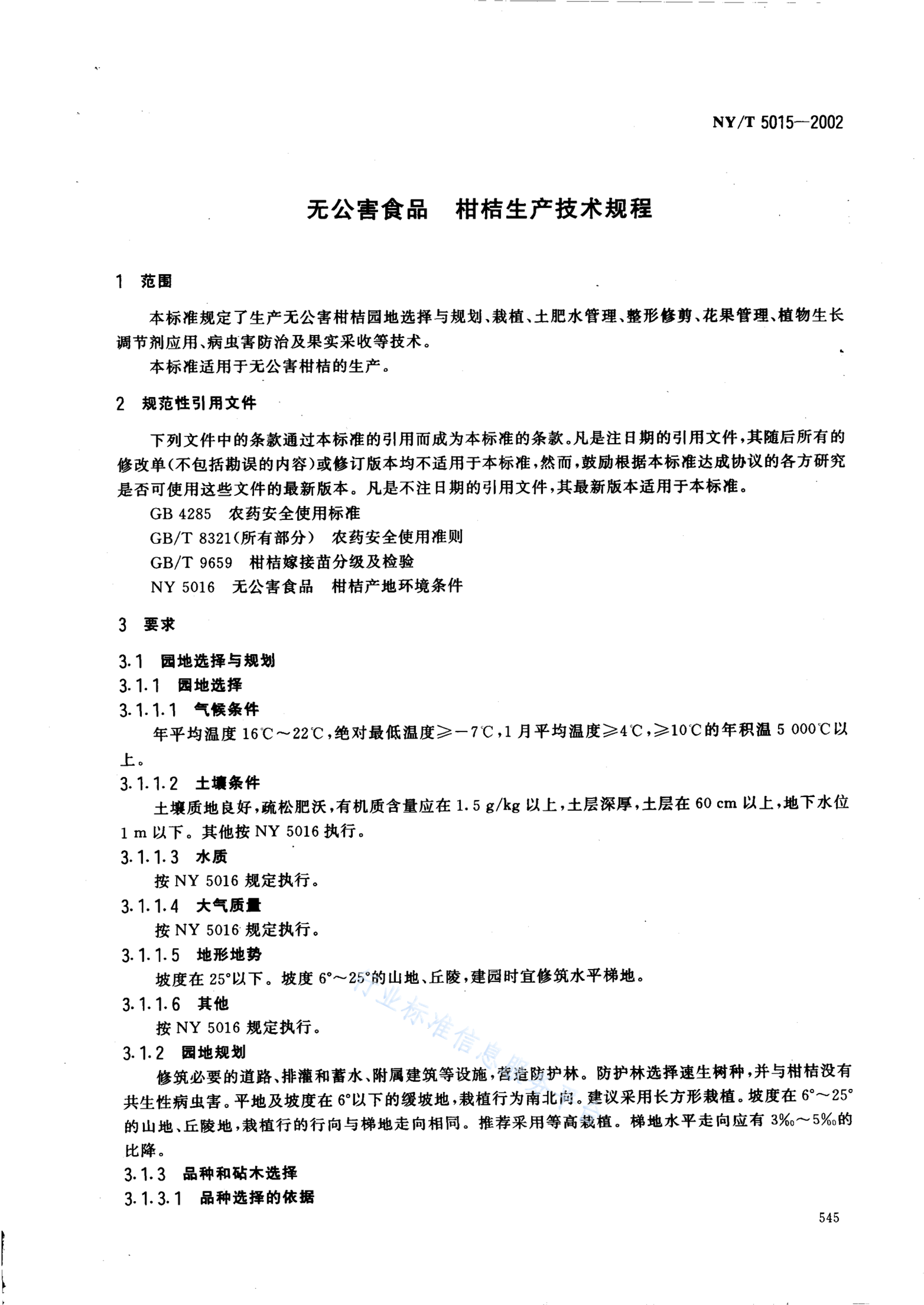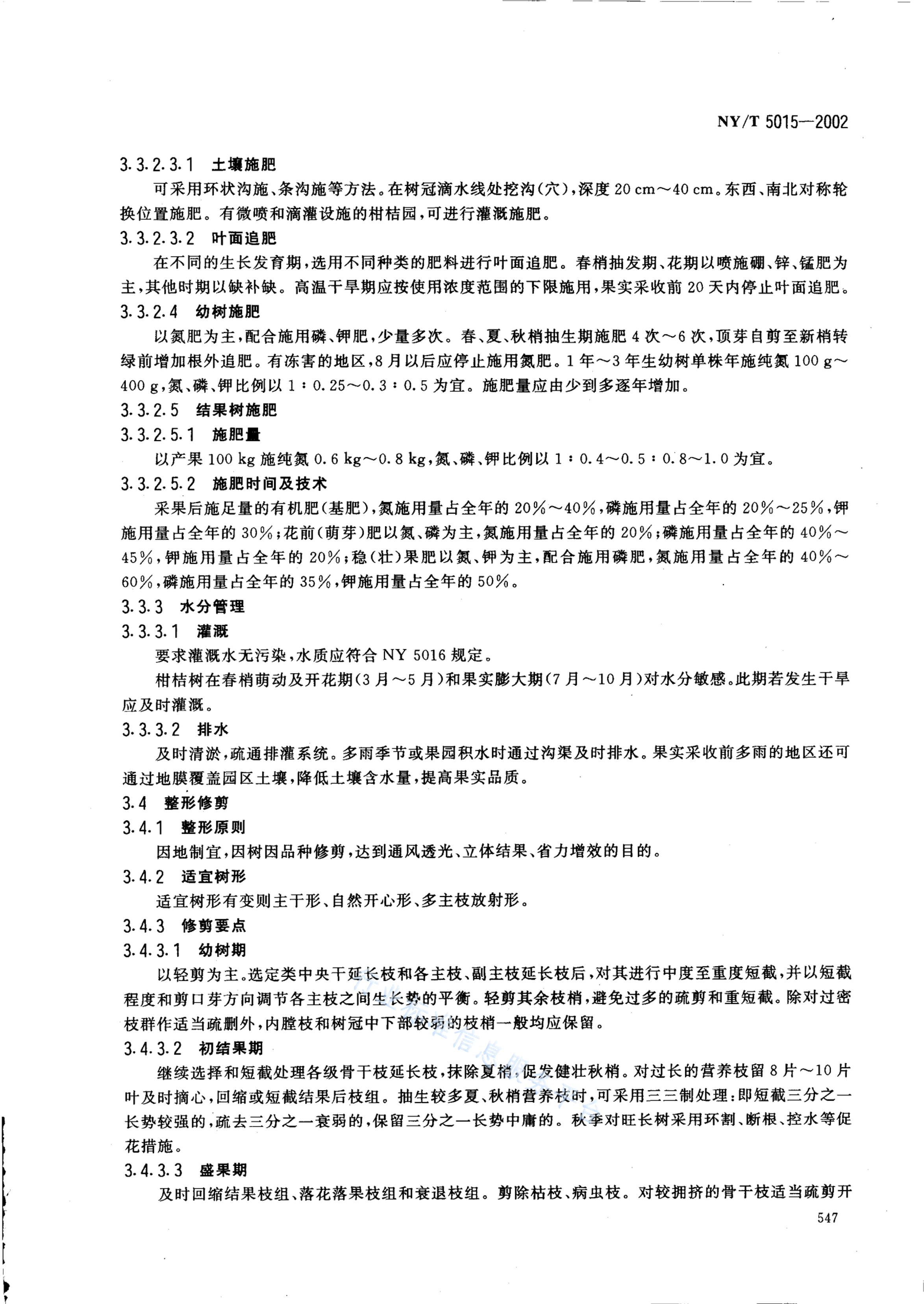NY/T 5015-2002 无公害食品 柑桔生产技术规程