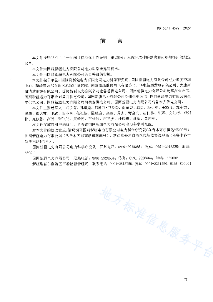 国网新疆电力有限公司电力科学研究院、国网新疆电力有限公司电力调度控制中心、新疆维吾尔自治区标准化研究院、南京南瑞继保电气有限公司、华电新疆发电有限公司、大唐新疆清洁能源有限公司、国网新疆电力有限公司吐鲁番供电公司、国网新疆电力有限公司超高压分公司、国网新疆电力有限公司昌吉供电公司、国网新疆电力有限公司克州供电公司、国网新疆电力有限公司奎屯供电公司、国网新疆电力有限公司阿勒泰供电公司、国网新疆电力有限公司乌鲁木齐供电公司