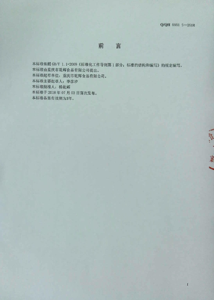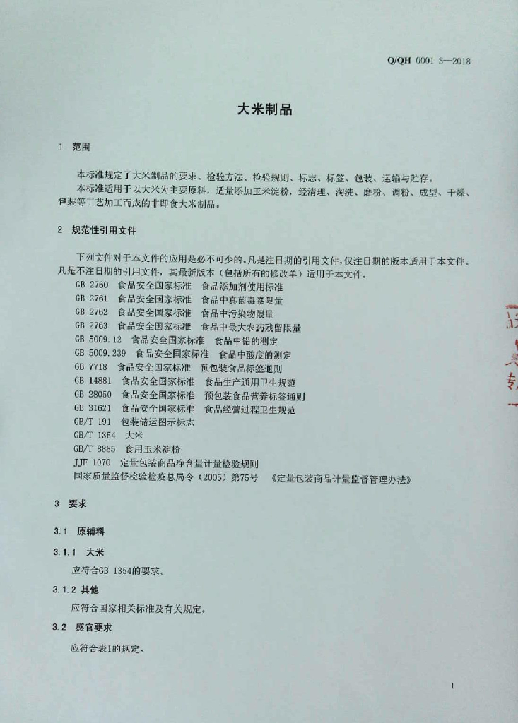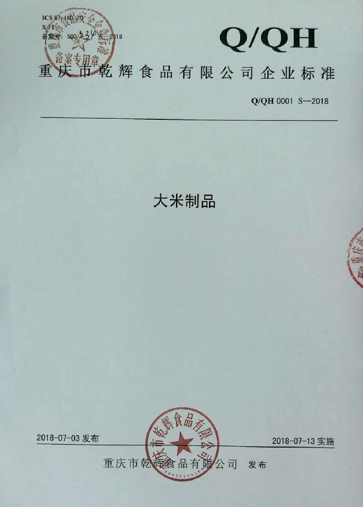 Q/QH 0001S-2018 大米制品