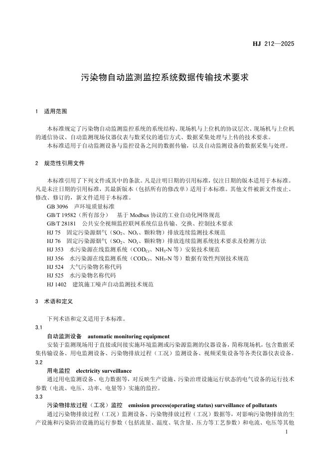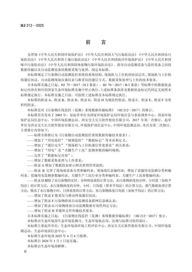 HJ 212-2025 污染物自动监测监控系统数据传输技术要求
