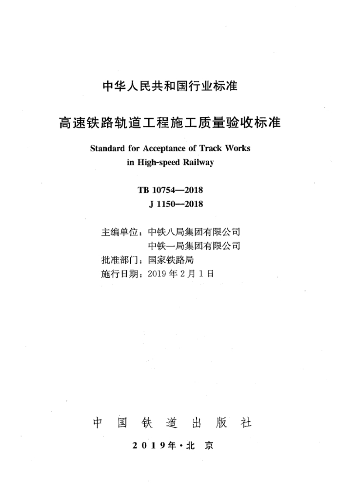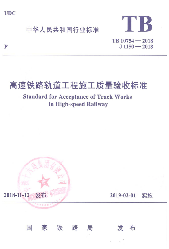 TB 10754-2018 高速铁路轨道工程施工质量验收标准
