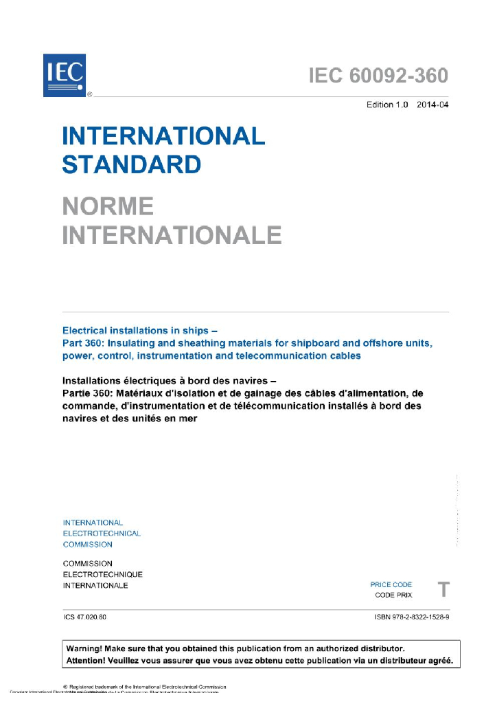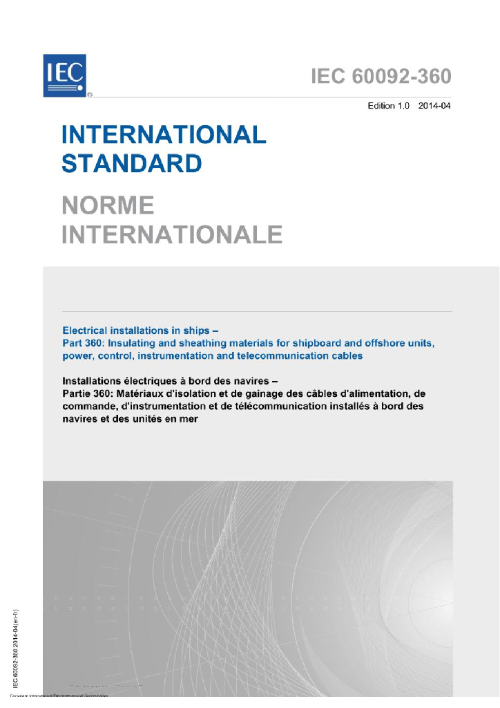 IEC 60092-360-2014 船舶电气设施 第360部分:船舶和离岸装置用动力、控制、仪器仪表和通信电缆用绝缘和护套材料(中)