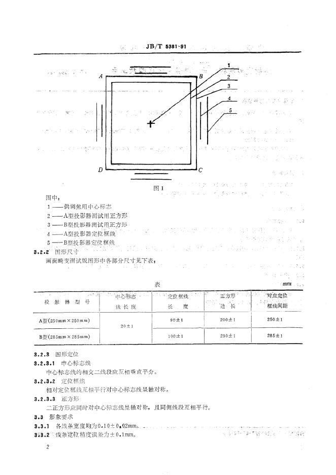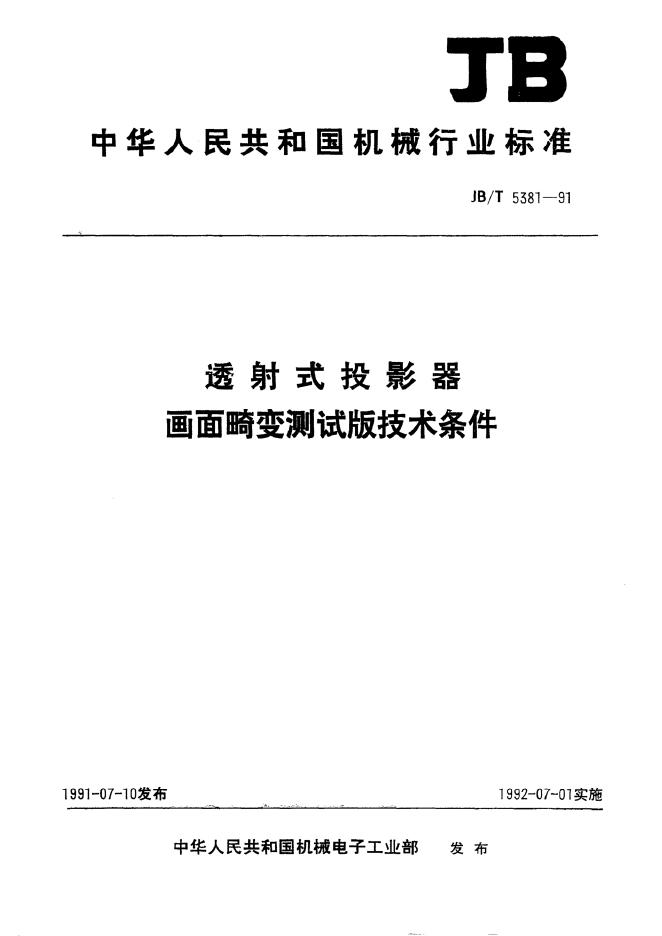 JB/T 5381-1991 透射式投影器 画面畸变测试版 技术条件