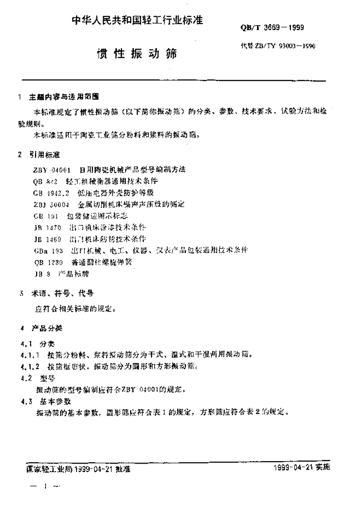 QB/T 3669-1999 惯性振动筛