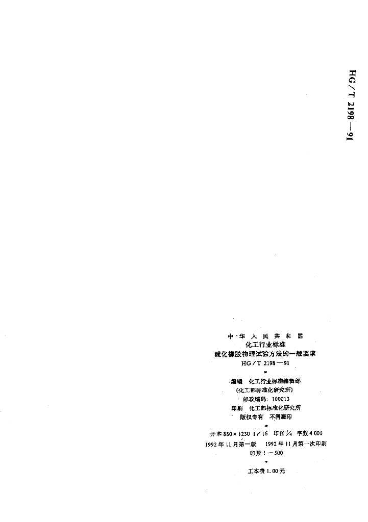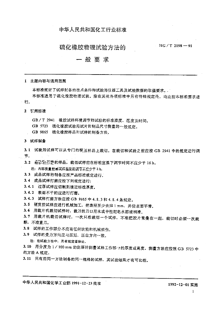 HG/T 2198-1991 硫化橡胶物理试验方法的一般要求