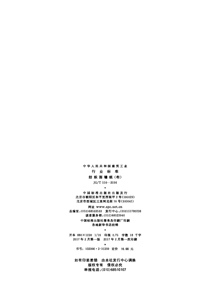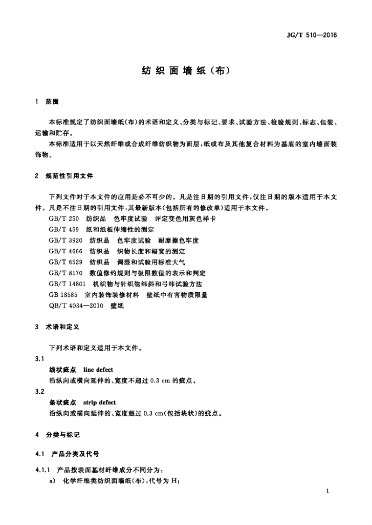 JG/T 510-2016 纺织面墙纸(布)