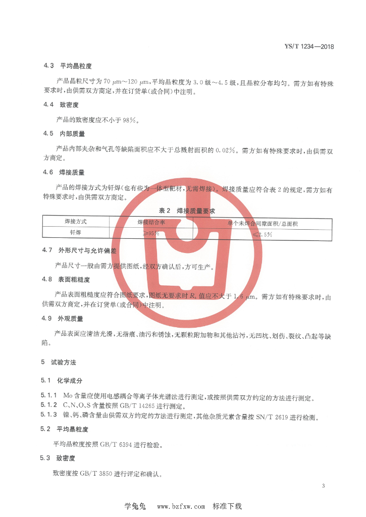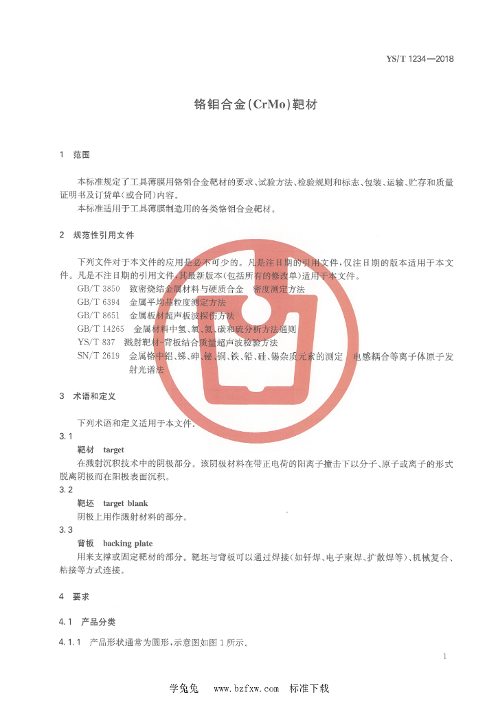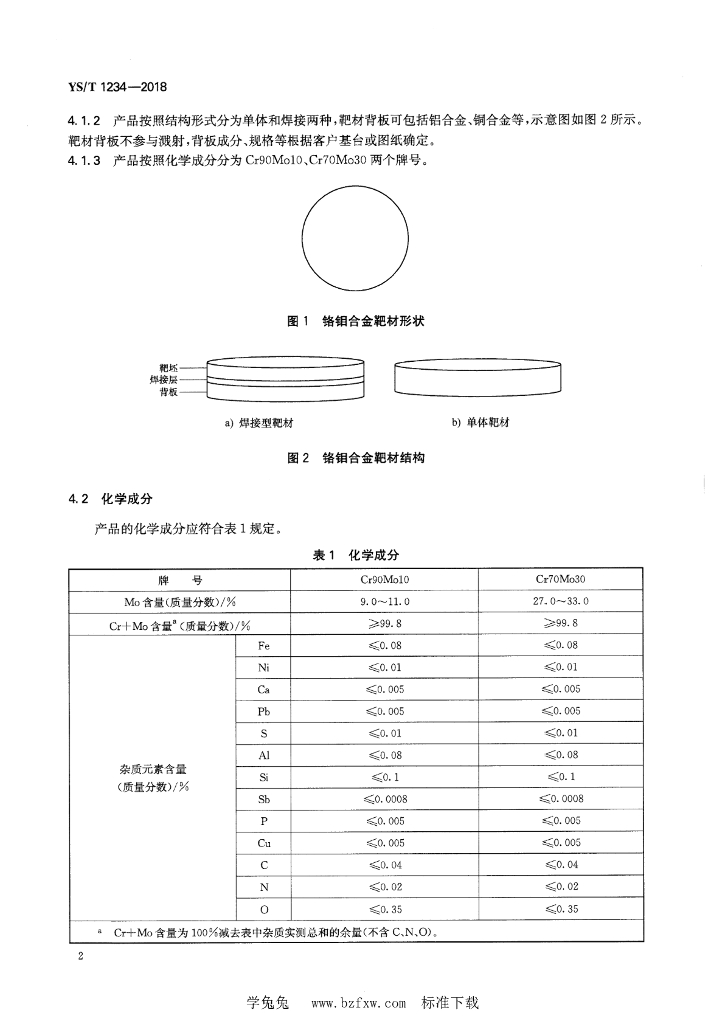 YS/T 1234-2018 铬钼合金(CrMo)靶材