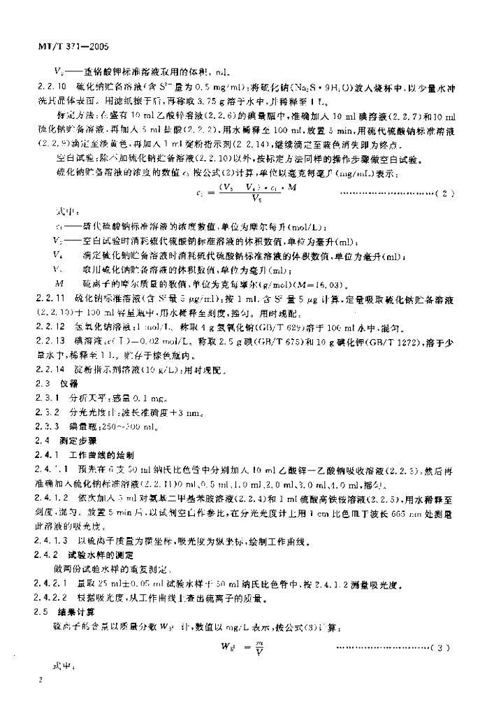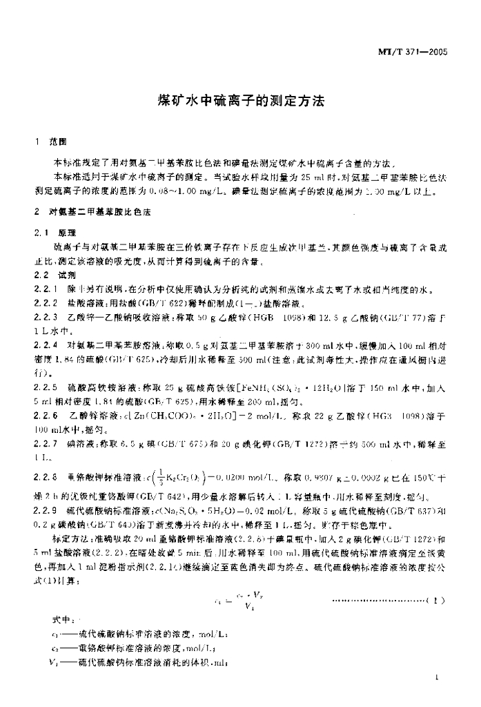 MT/T 371-2005 煤矿水中硫离子的测定方法