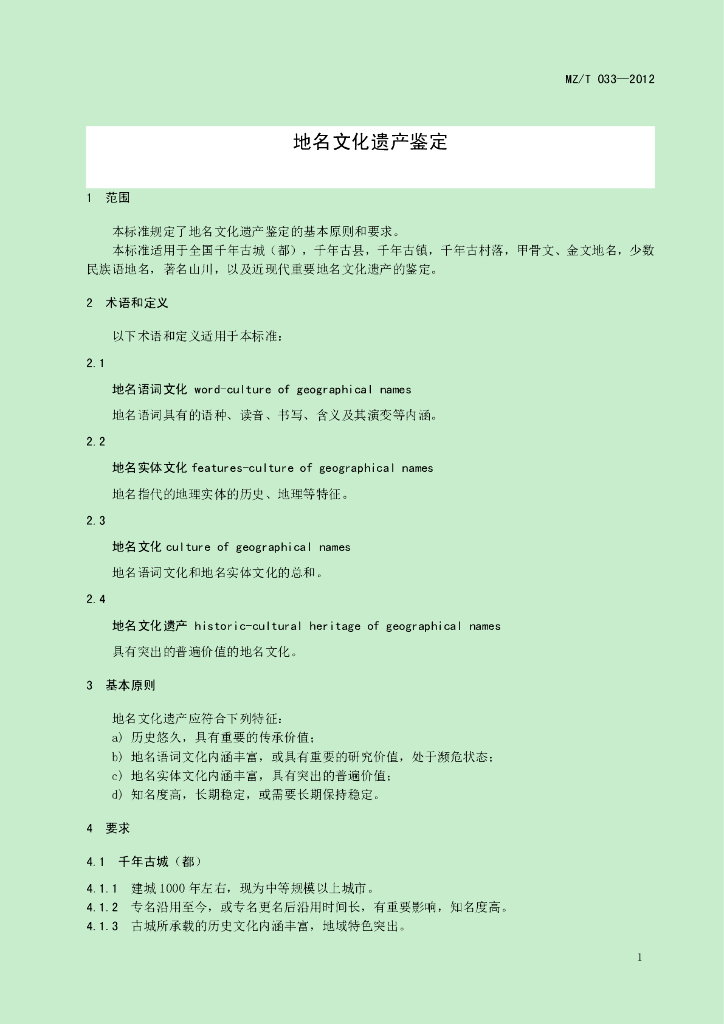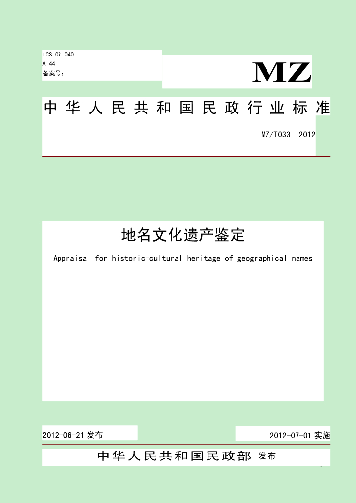 MZ/T 033-2012 地名文化遗产鉴定