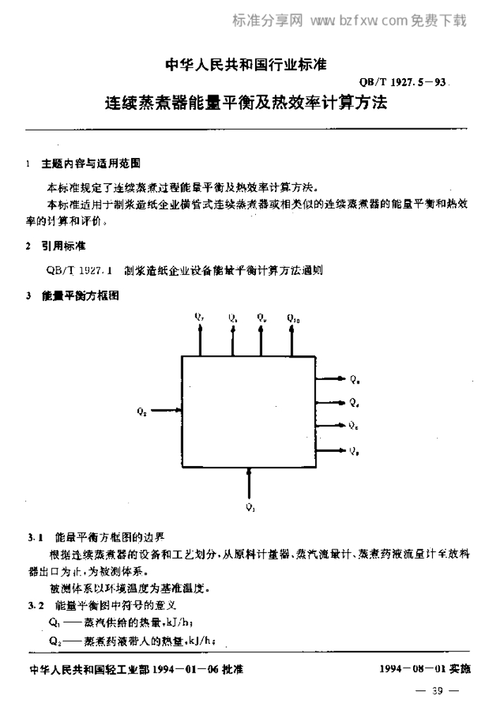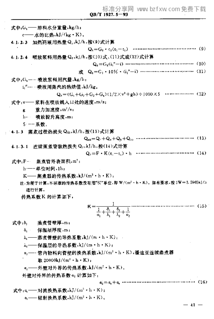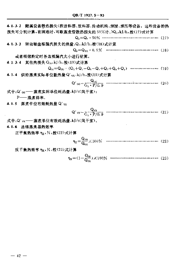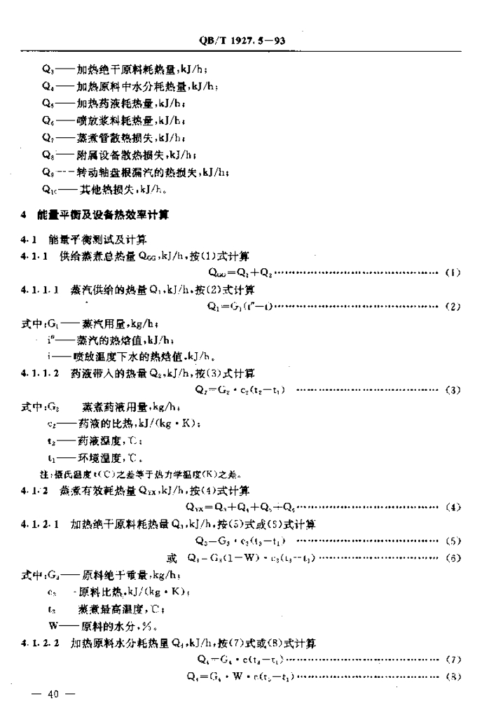 QB/T 1927.5-1993 连续蒸煮器能量平衡及热效率计算方法