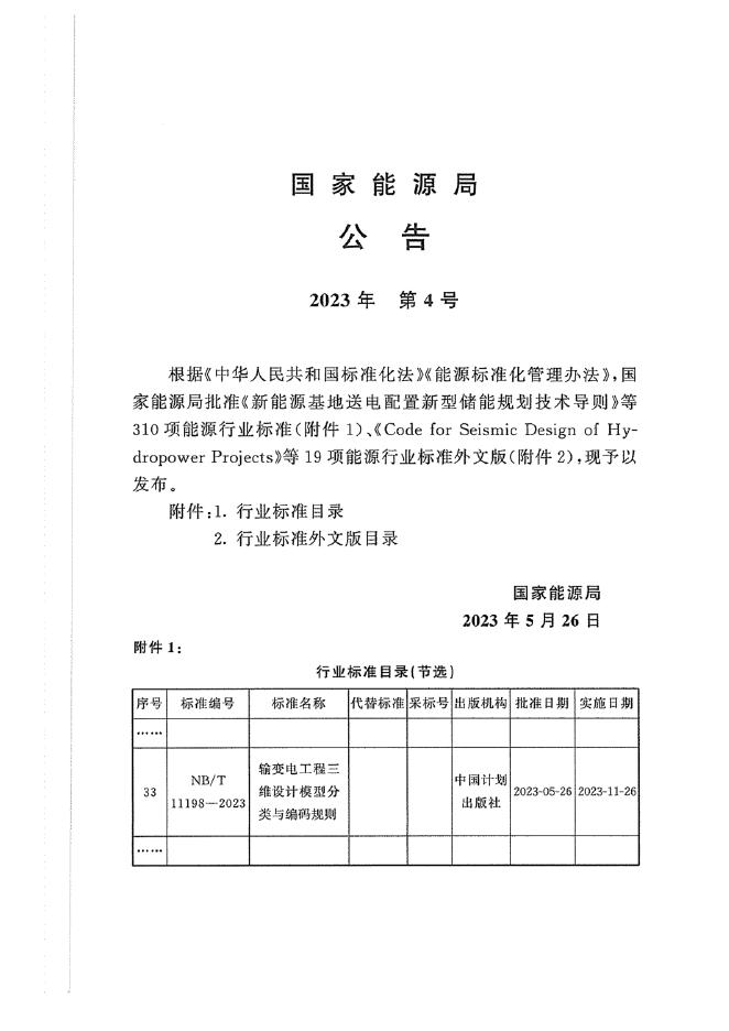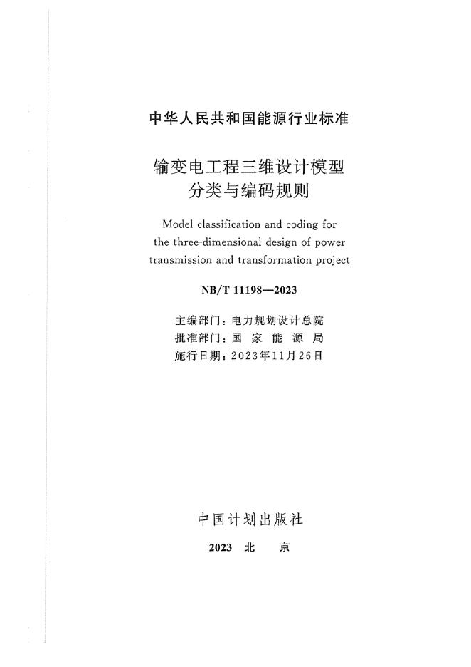 NB/T 11198-2023 输变电工程三维设计模型分类与编码规则(附条文说明)