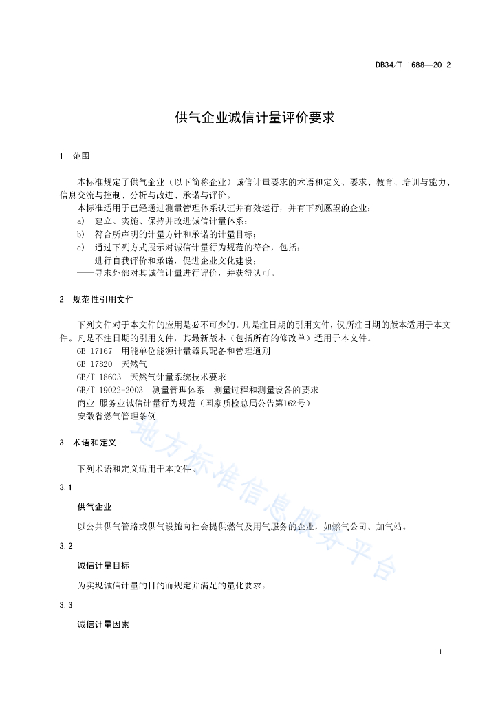 DB34/T 1688-2012 供气企业诚信计量评价要求