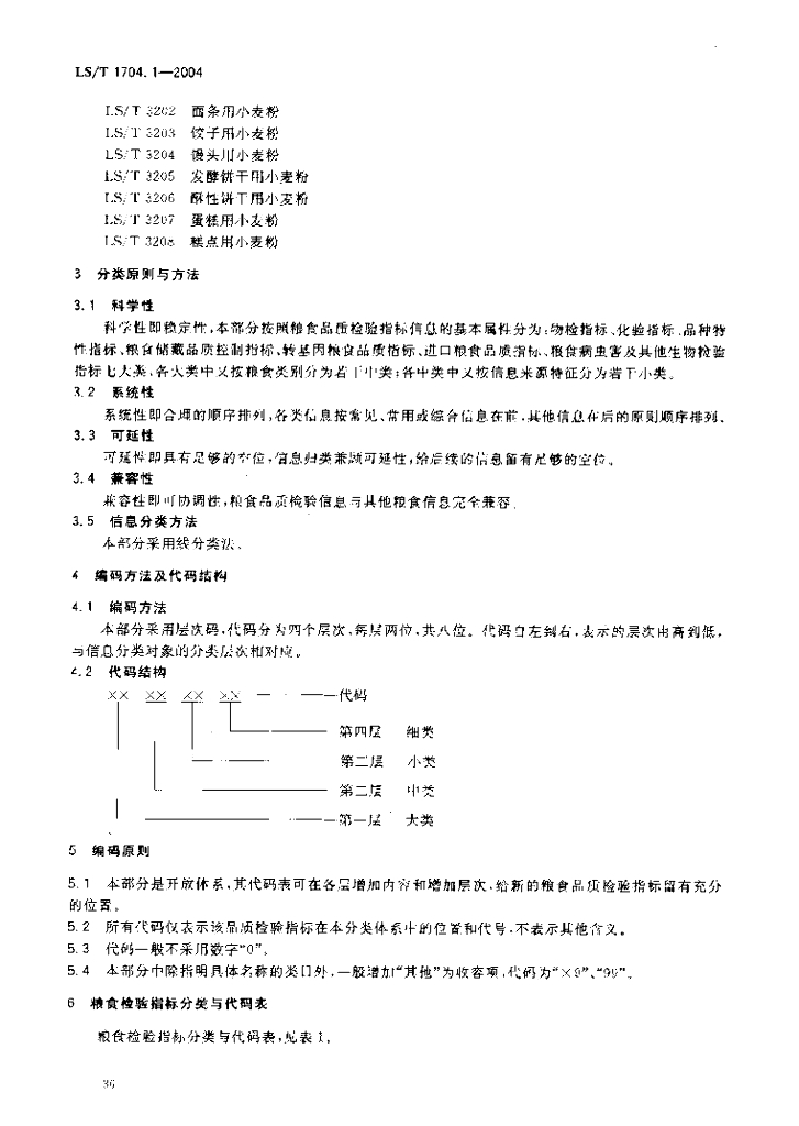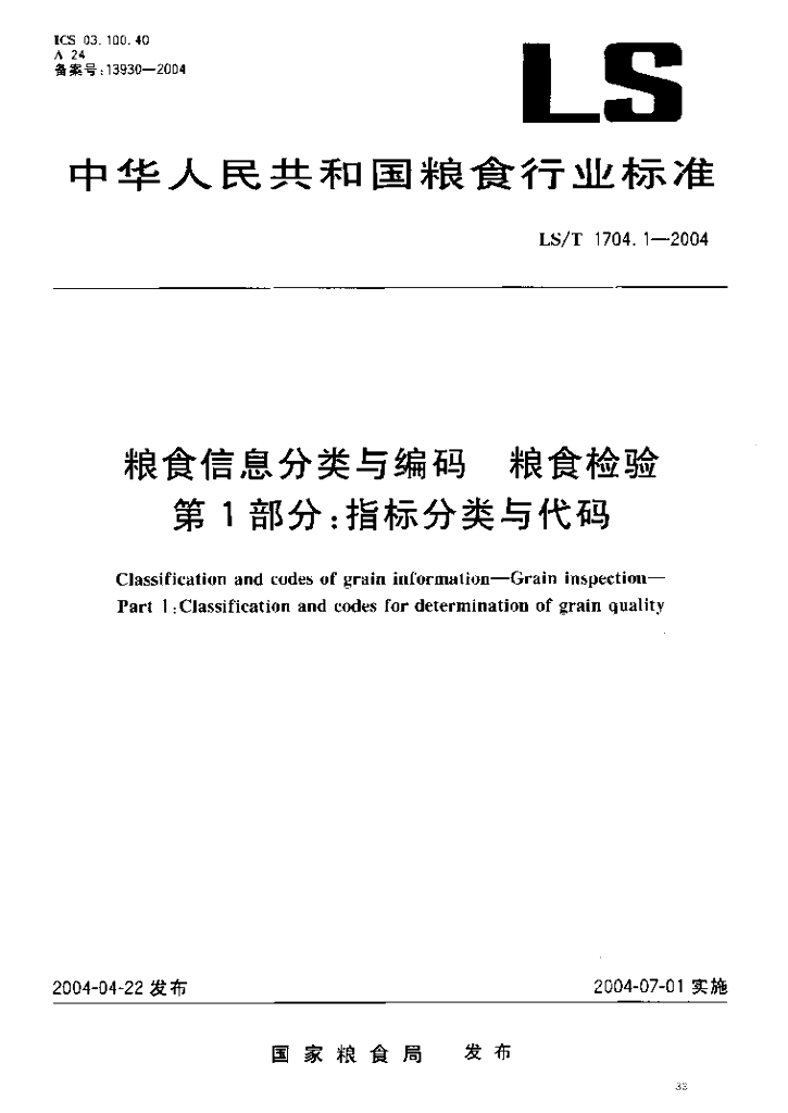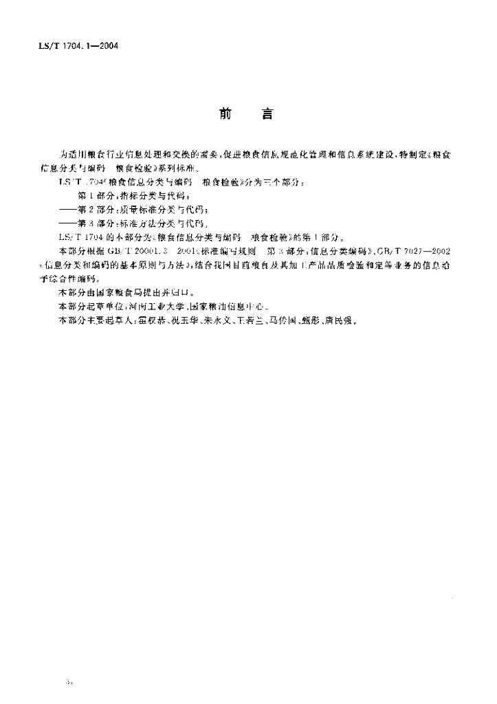 LS/T 1704.1-2004 粮食信息分类与编码 粮食检验 第1部分:指标分类与代码