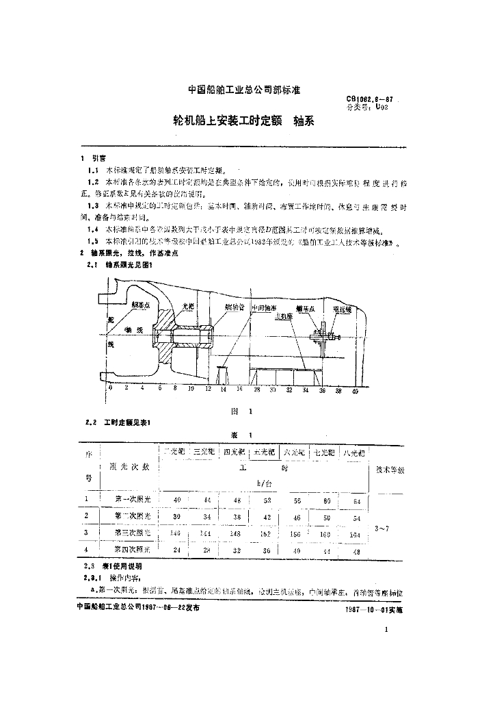 CB 1062.6-1987 轮机船上安装工时定额 轴系