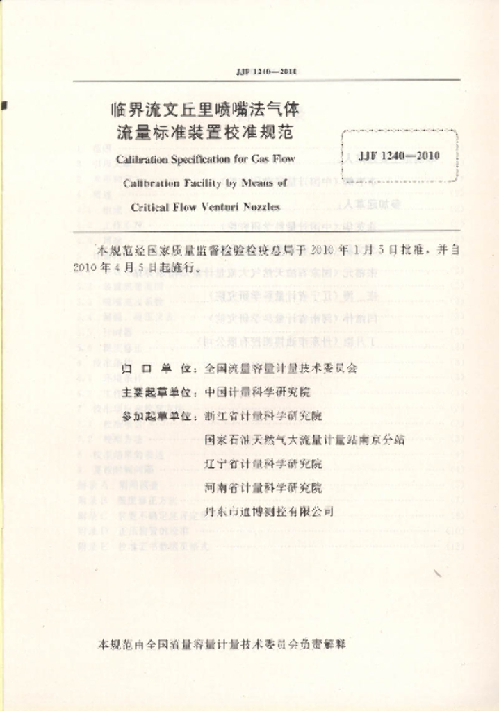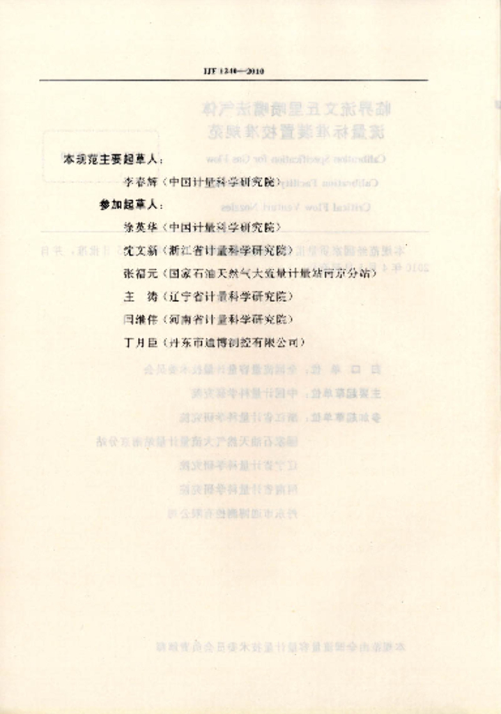 李春辉(中国计量科学研究院)、徐英华(中国计量科学研究院)、沈文新(浙江省计量科学研究院)、张福元(国家石油天然气大流量计量站南京分站)、庄涛(辽宁省计量科学研究院)、间继伟(河南省计量科学研究院)、丁月臣(丹东市通博测控有限公司)